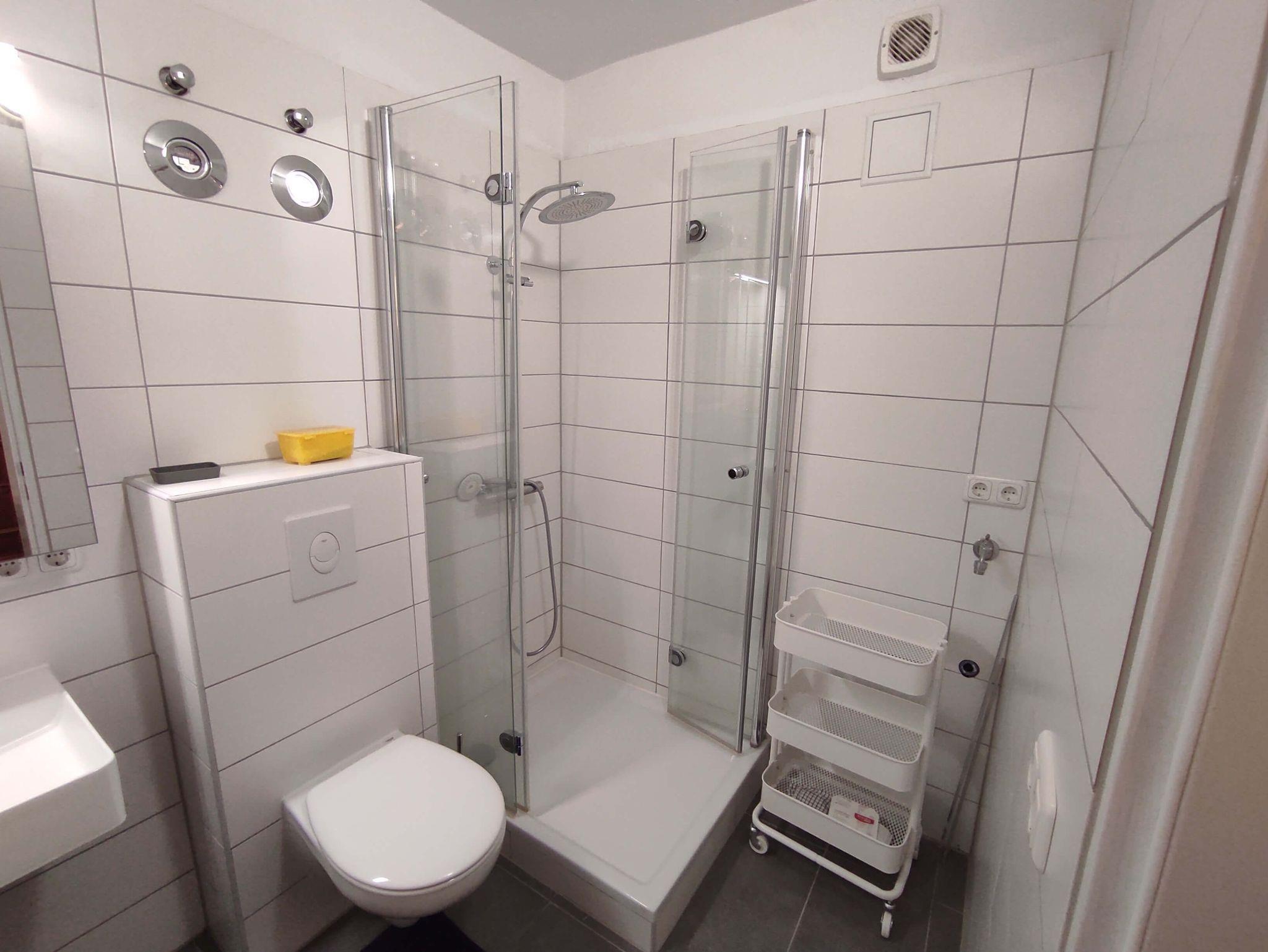 Im Keller des Apartmenthauses befindet sich ein Fahrradkeller und eine Waschküche mit Münz-Waschmaschine.