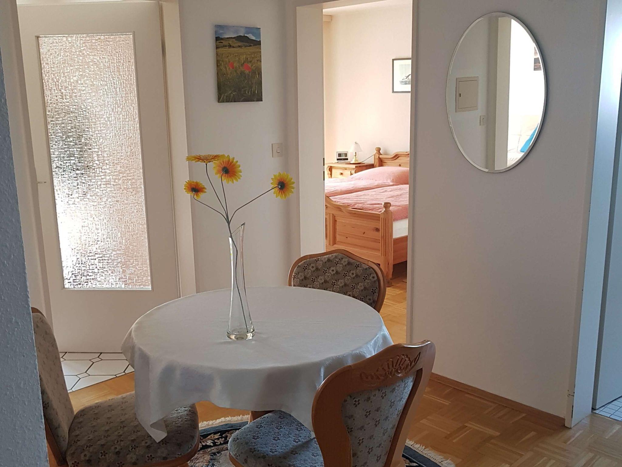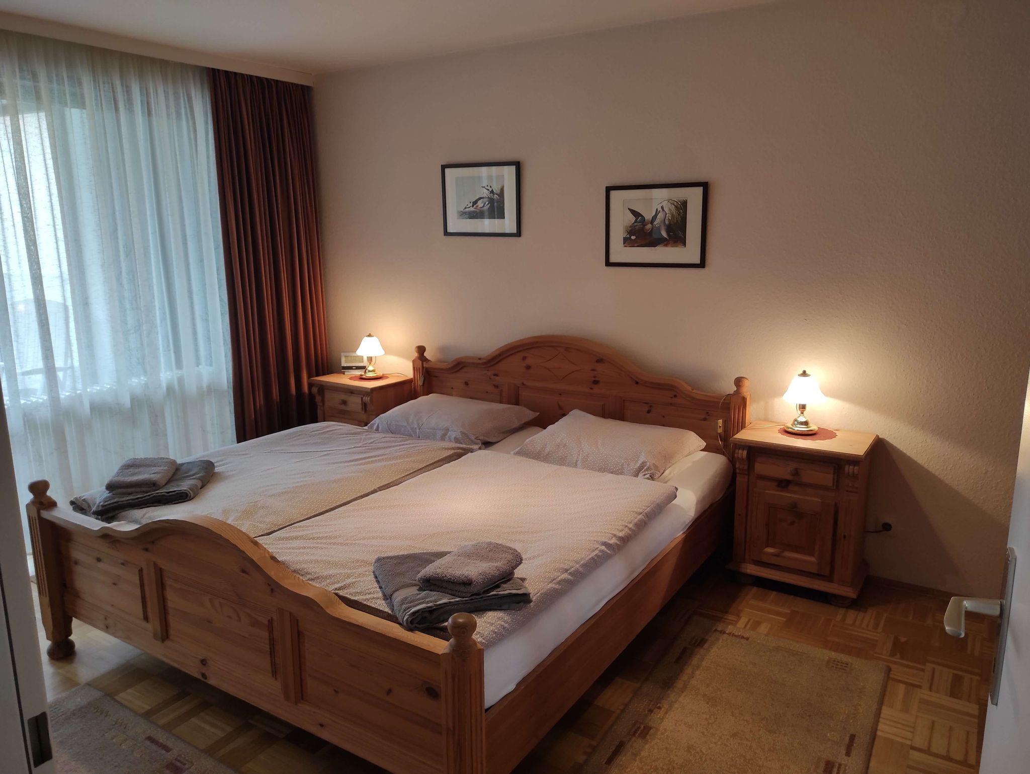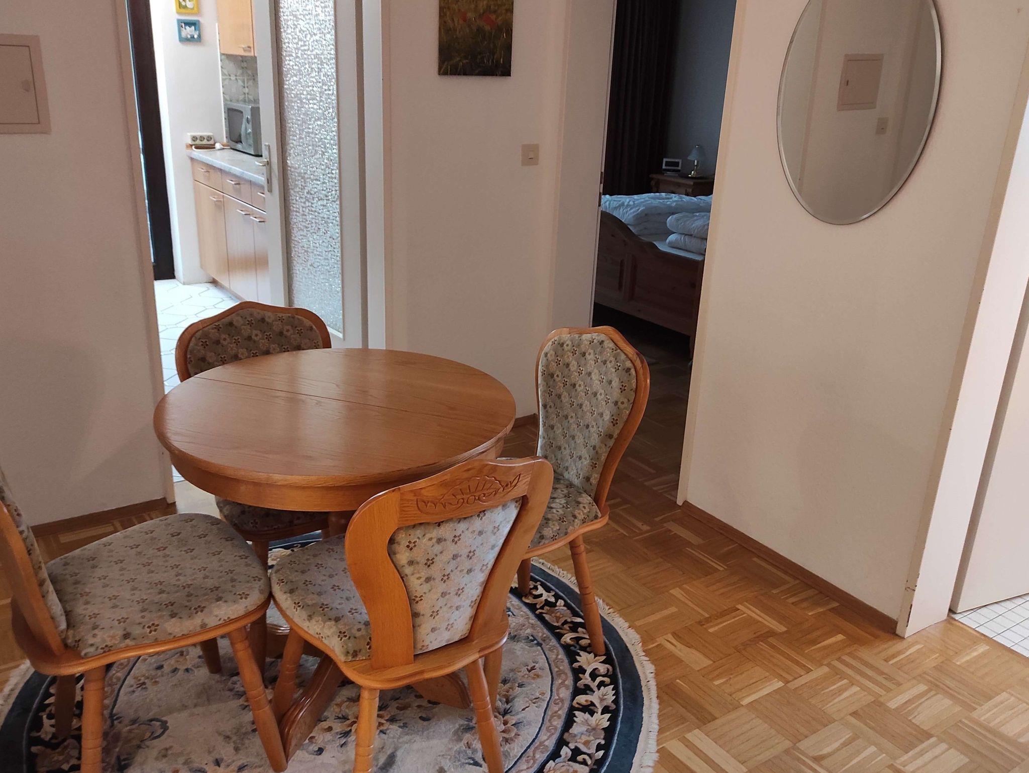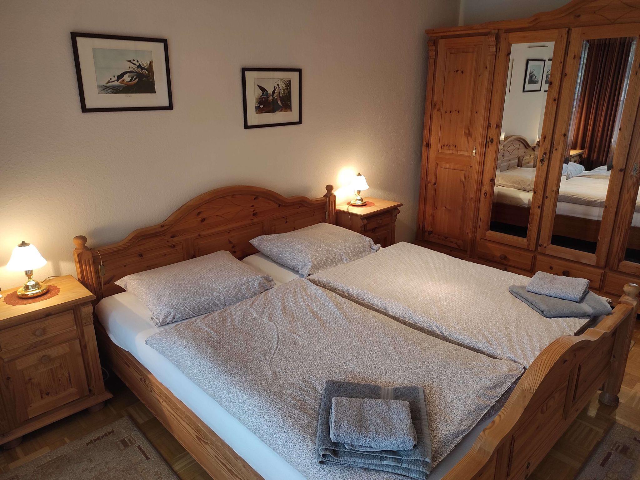Die Ferienwohnung liegt in der 3. Etage und ist mit einem Fahrstuhl zu erreichen. Sie verfügt über einen großzügigen Balkon, ein separates Schlafzimmer, Diele mit Essbereich und ein Wohnzimmer mit einem großzügigen 1'80m Doppelschrankbett sowie einem Sofa und einem Sessel und TV. Im hellen Badezimmer befindet sich eine Dusche, die mit einem Klappsitz und Haltegriff ausgestattet ist. Die komplett eingerichtete Küche verfügt über einen Backofen mit Cerankochfeld, Mikrowelle, Kaffeemaschine, Wasser- und Eierkocher, Toaster, Backformen, Handmixer sowie einem Kühlschrank mit Eisfach.