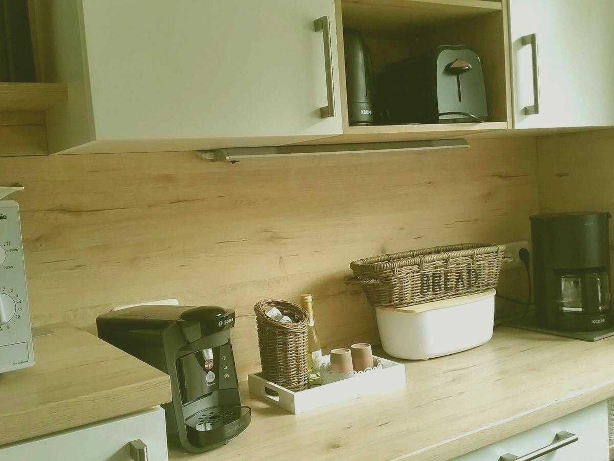 • Eine Mikrowelle ist ebenfalls vorhanden.