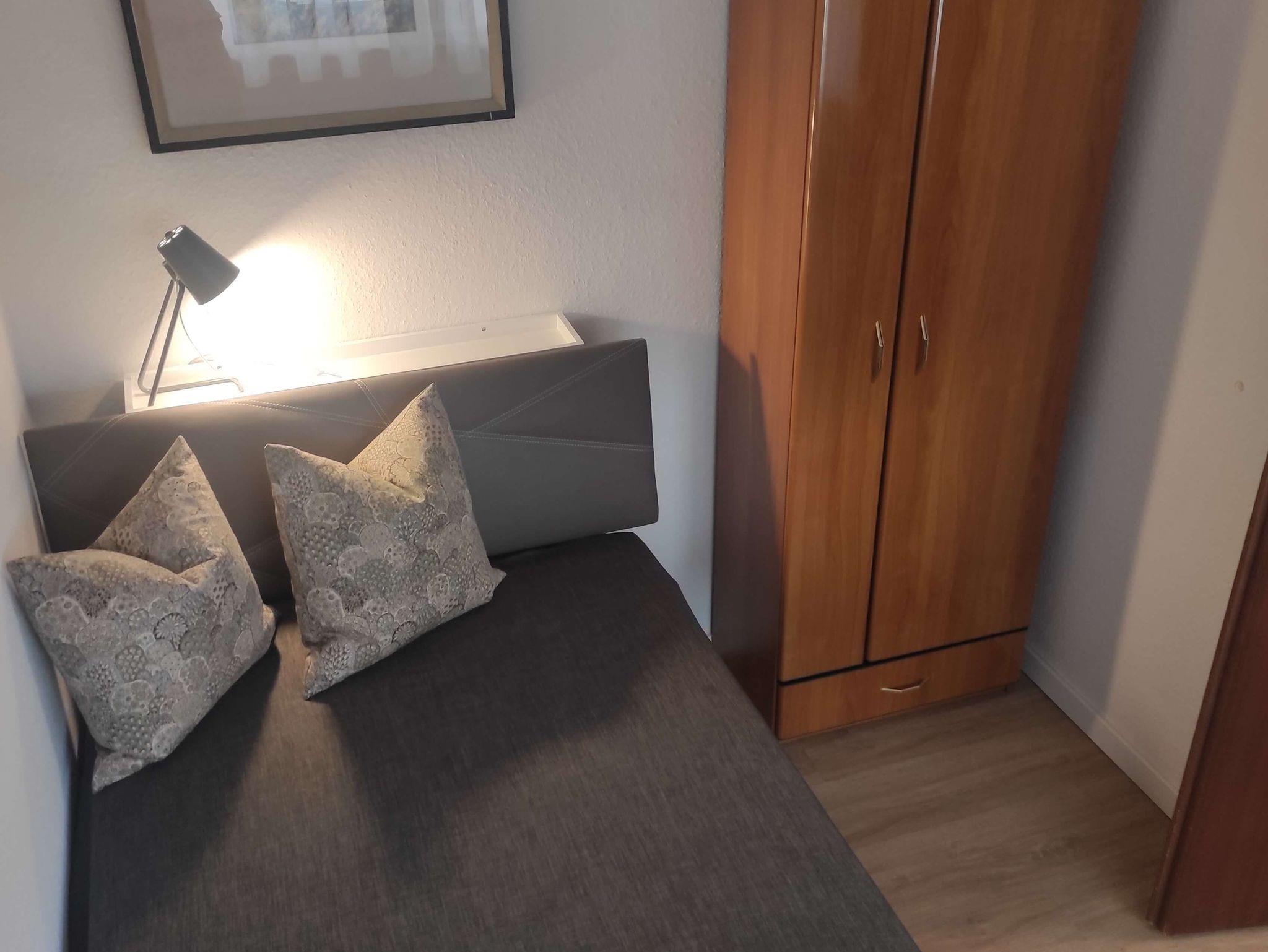 Separates, kleines Schlafzimmer, Bett (200x100), Kleiderschrank.