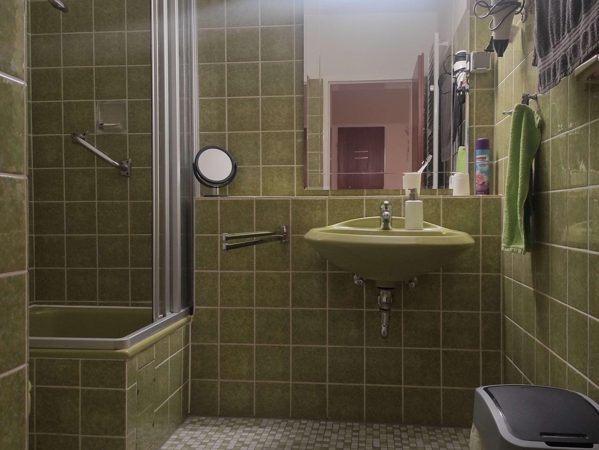 Duschbad, WC, Fön und Vergrößerungsspiegel vorhanden.