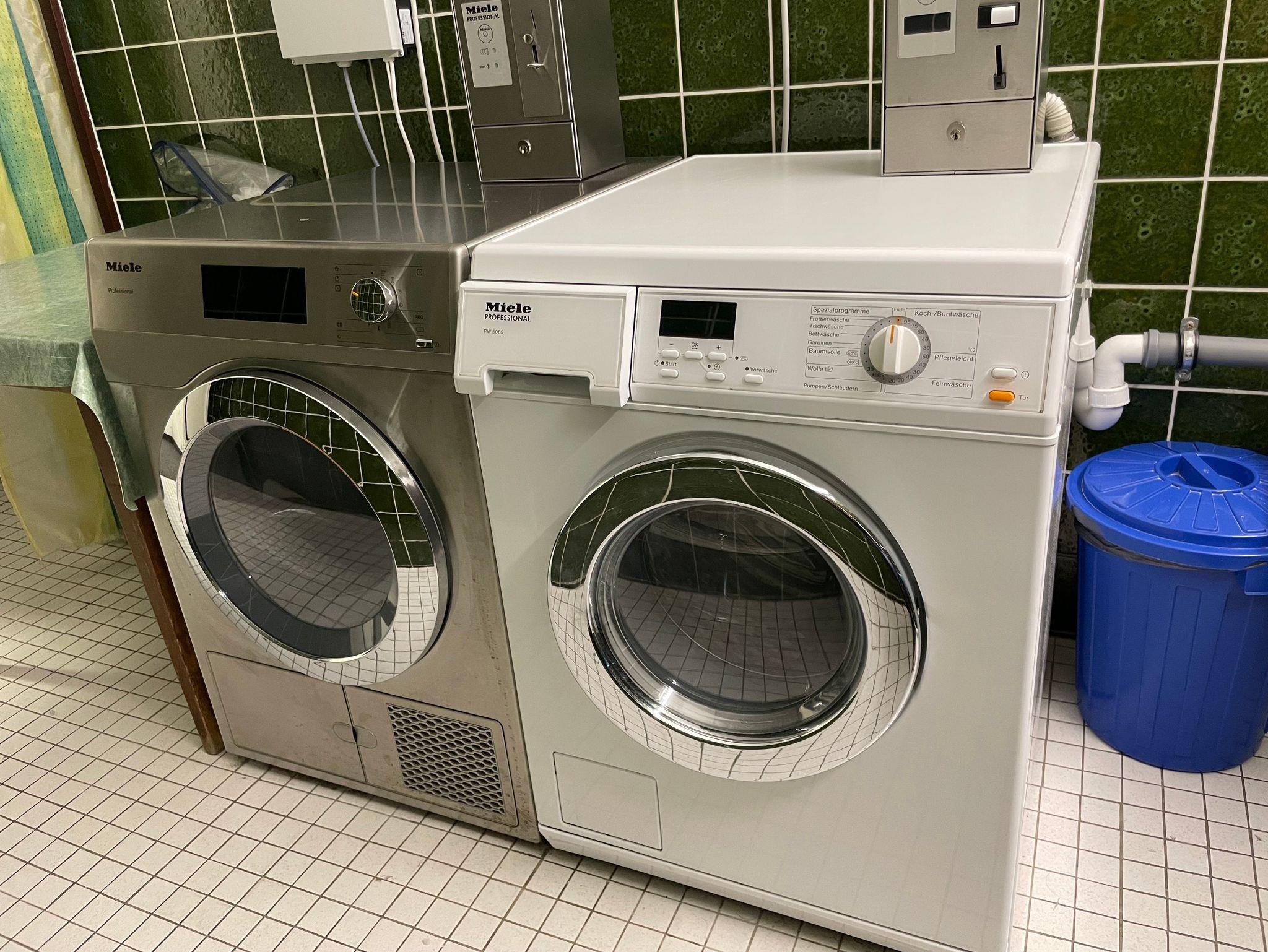 Falls mal etwas schmutzig wird, in der 2. Etage befinden sich Münz-Waschmaschine und Trockner. Beim Hausmeister können Sie dafür Waschmarken erwerben.