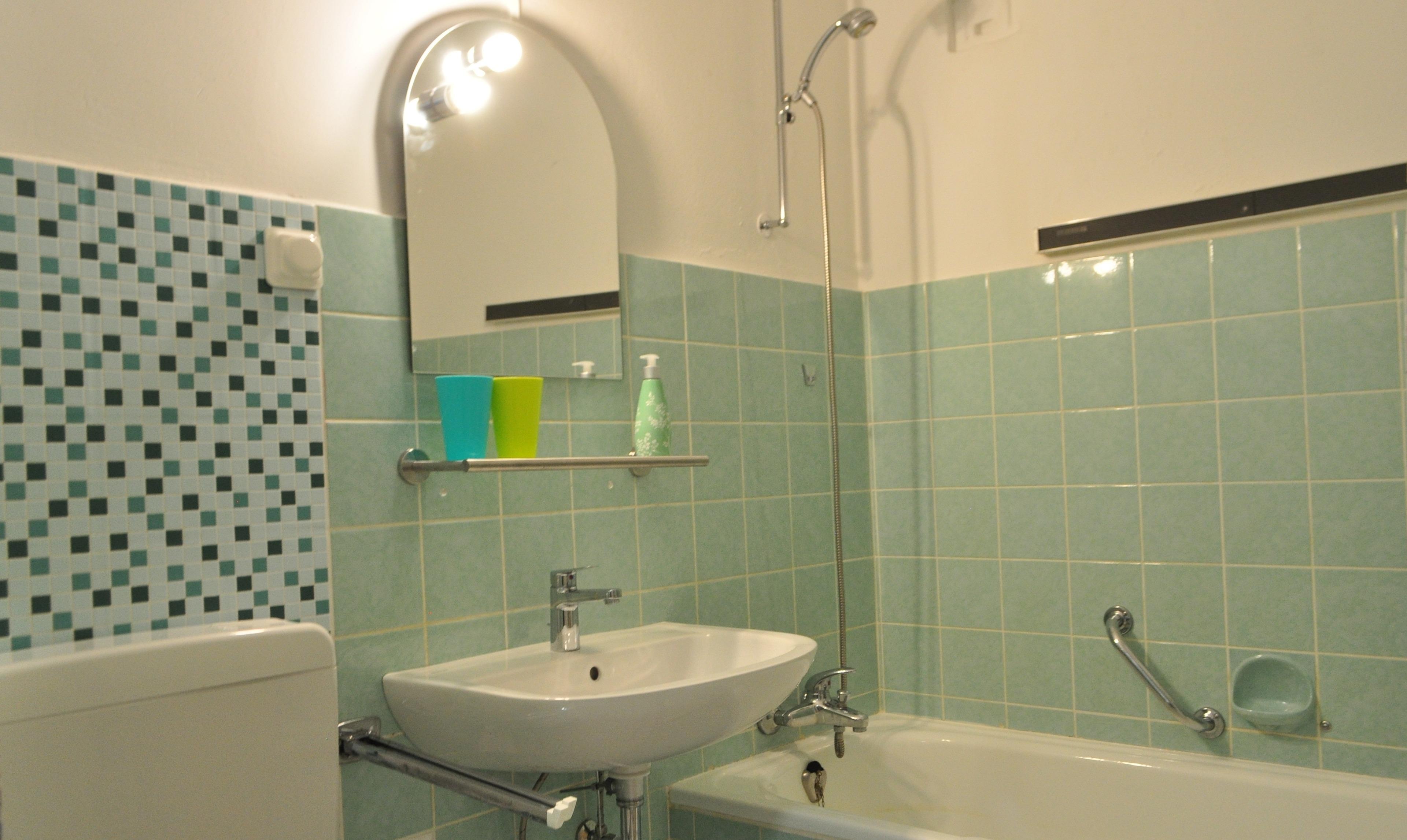 Im Badezimmer finden Sie eine Dusche-Wannenkombination und einen Haartrockner.