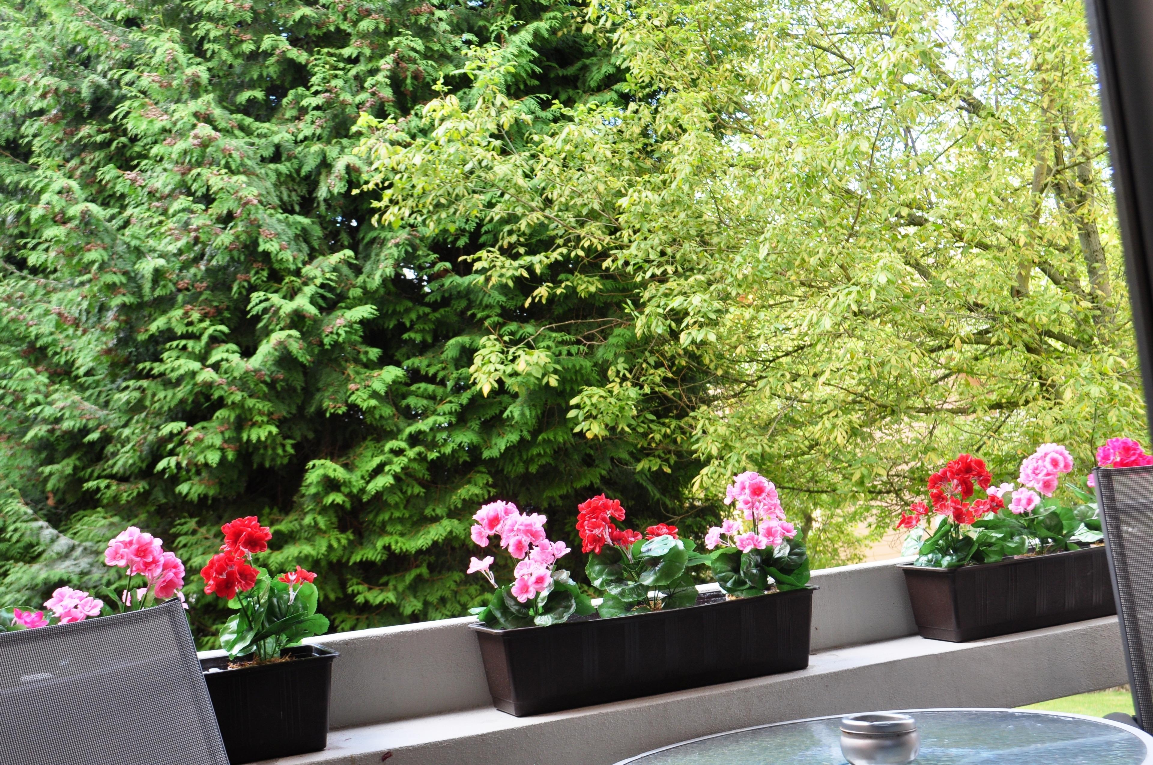 Auf dem Balkon mit Blick ins Grüne können Sie entspannen, Kaffee trinken oder einfach ein gutes Buch lesen.