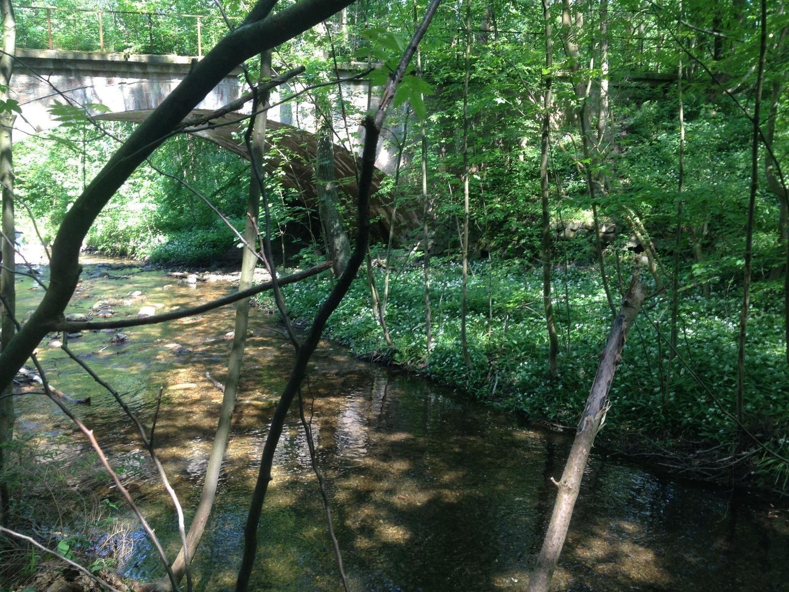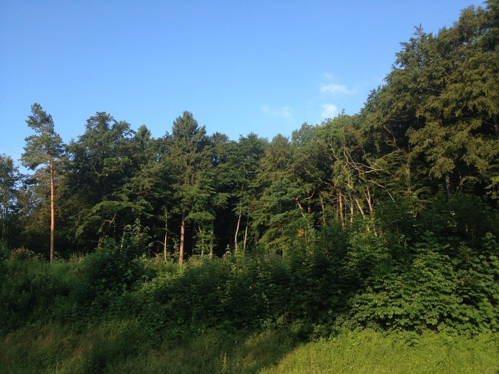 Der ehemalige Grenzbach fließt nur 200 Meter entfernt und sorgt für eine wildromantische Atmosphäre. Im Frühjahr wachst hier Bärlauch, im Herbst sprießen Pilze aus dem Boden.