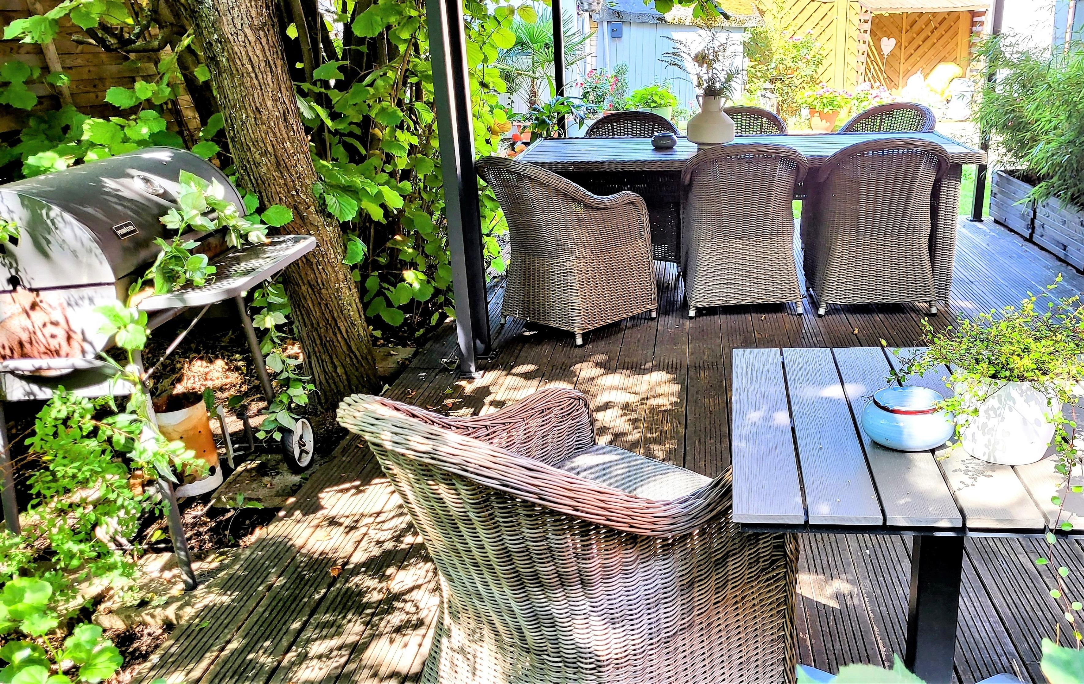 * eine Sitz- und Grillmöglichkeit im Garten lässt die gesundheitsfördernde Harzer Frischluft genießen.