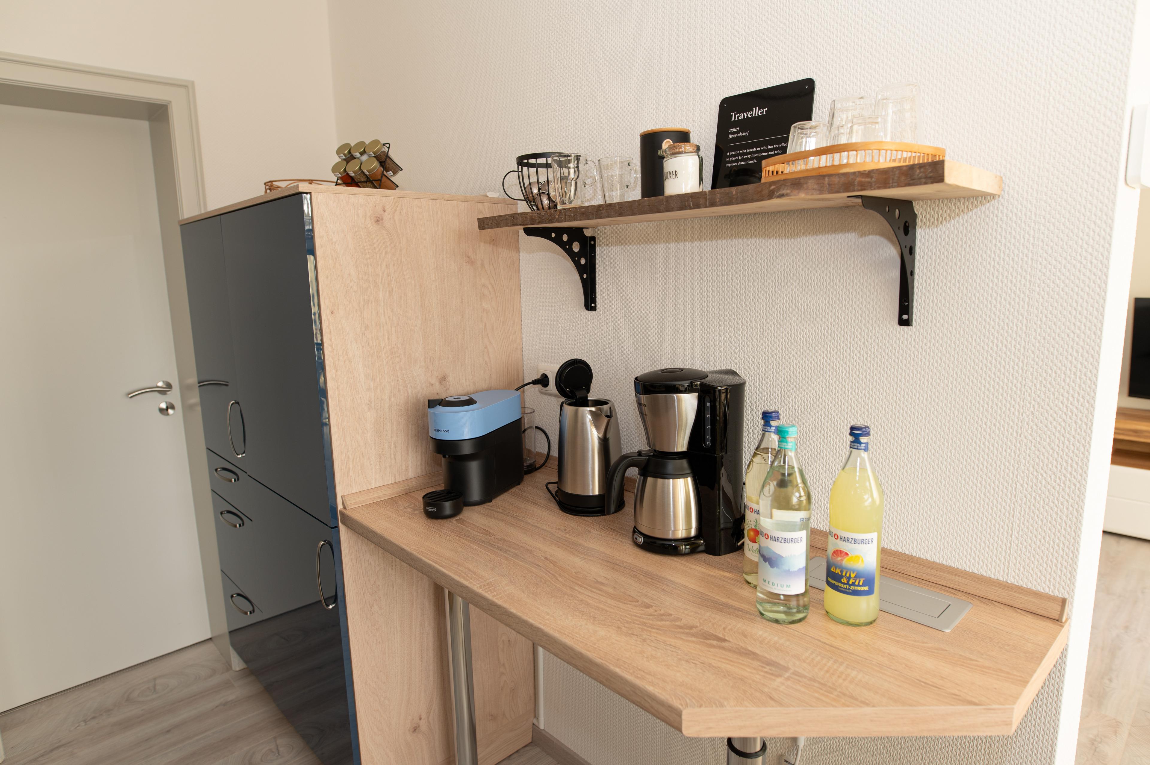 Genießen Sie, dank der Kapselkaffeemaschine mit dazugehörigen Kaffeekapseln, ein Heißgetränk am Morgen oder einfach zwischendurch. Ebenso liegt ein Küchenpaket bereit.