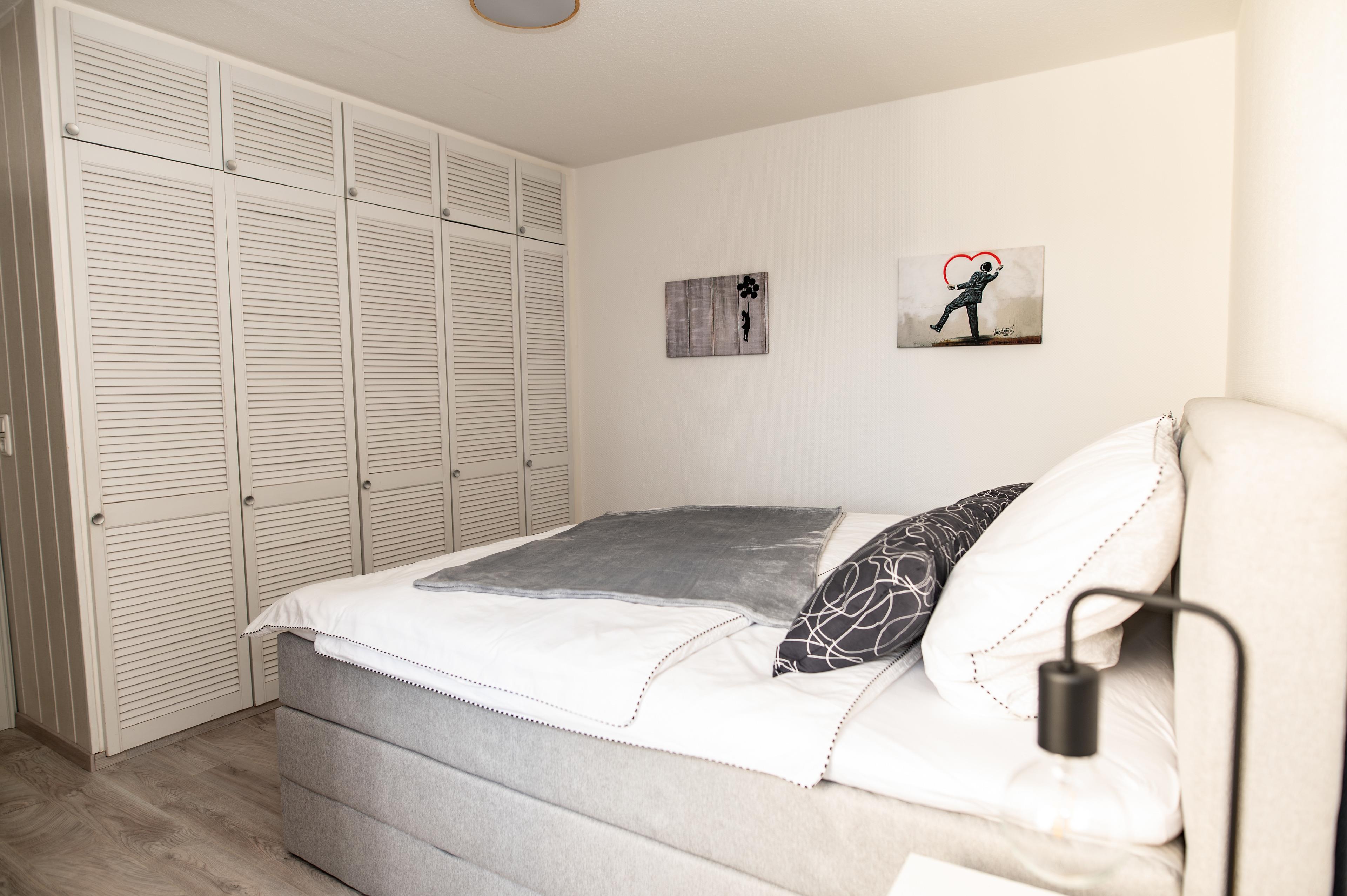 Erholsamen Schlaf nach einem aufregenden Tag finden Sie im Schlafzimmer auf dem modernen Boxspringbett. Ein großzügiger Kleiderschrank erlaubt es Ihnen, auch ein paar Kleidungsstücke mehr einzupacken. Damit dafür genügend Platz in Ihrem Koffer ist, sind Bettwäsche und Handtücher für Sie inklusive im Übernachtungspreis enthalten.