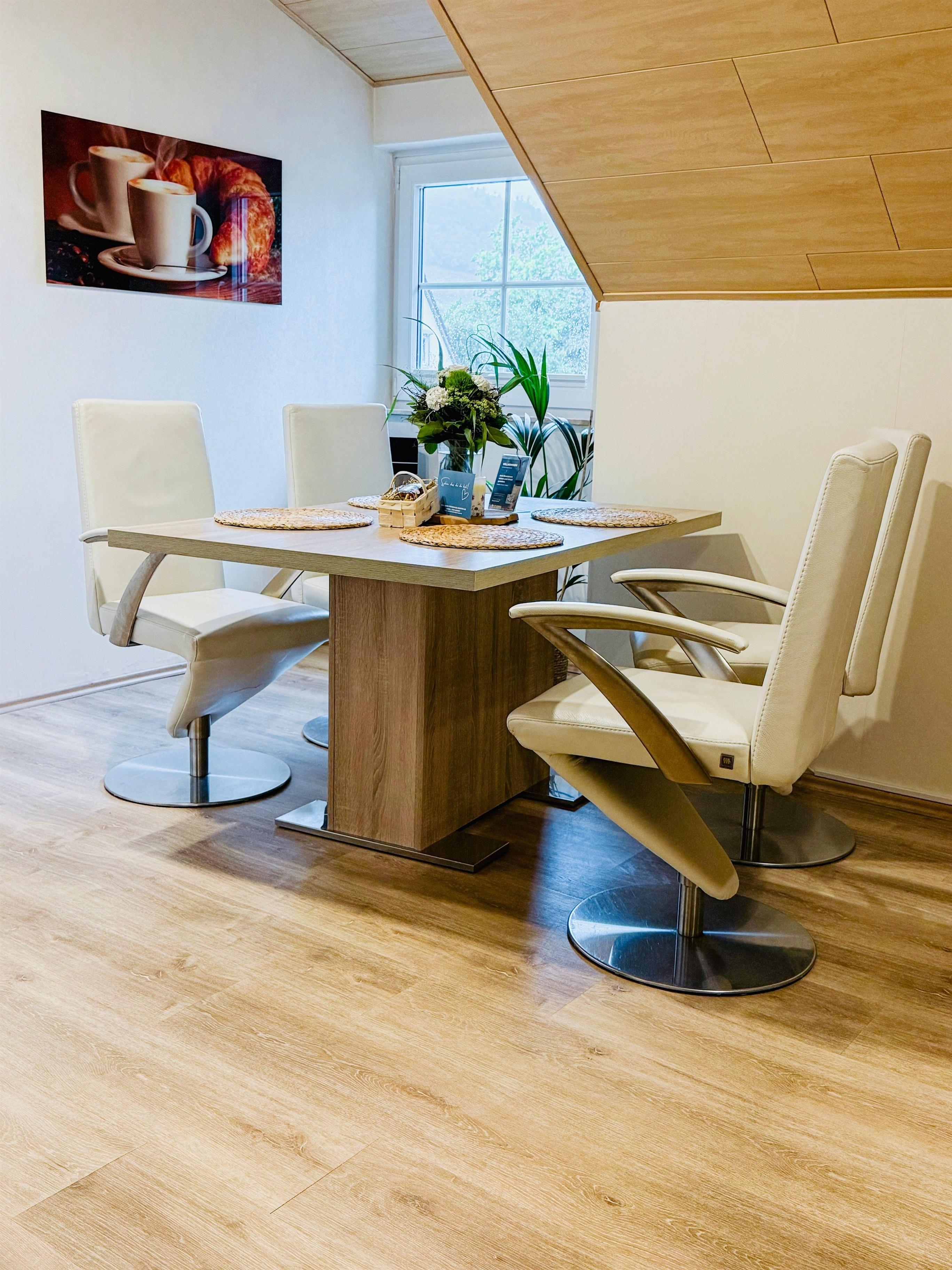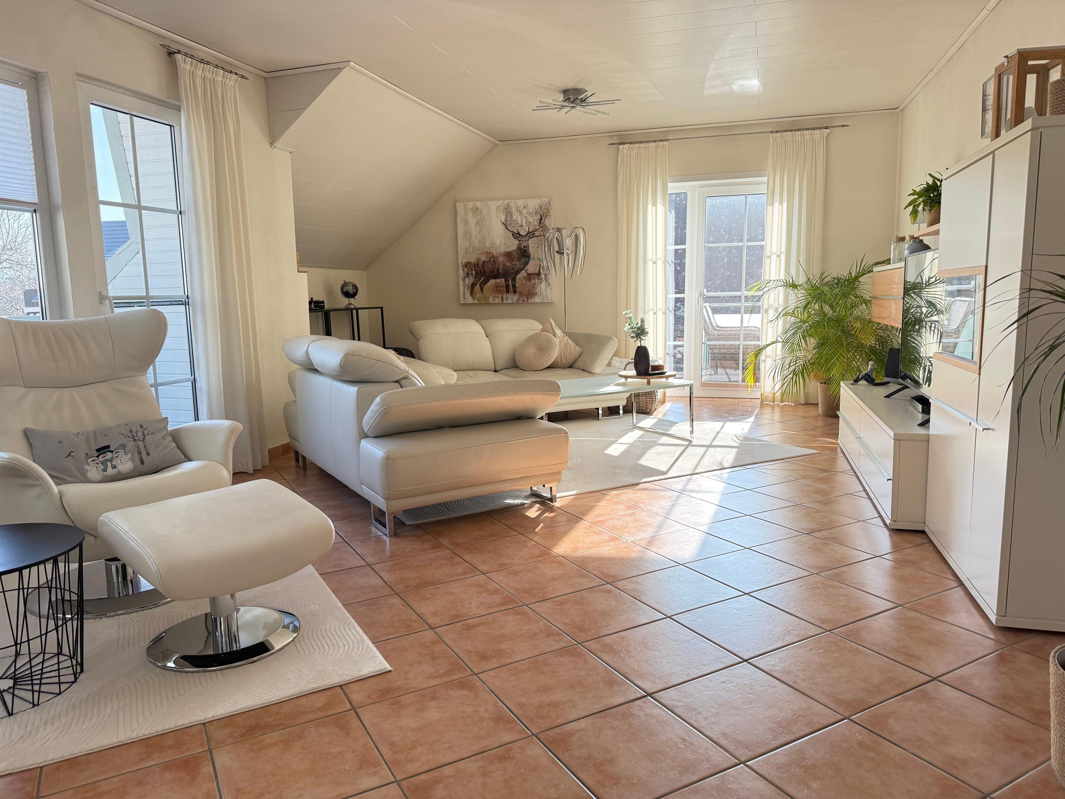 Eine Ferienwohnung mit klarer Linie und angenehmer Atmosphäre. Hell, gepflegt und durchdacht eingerichtet, mit 2 Balkonen, Kaminofen und viel Raum zum Ankommen und Wohlfühlen.