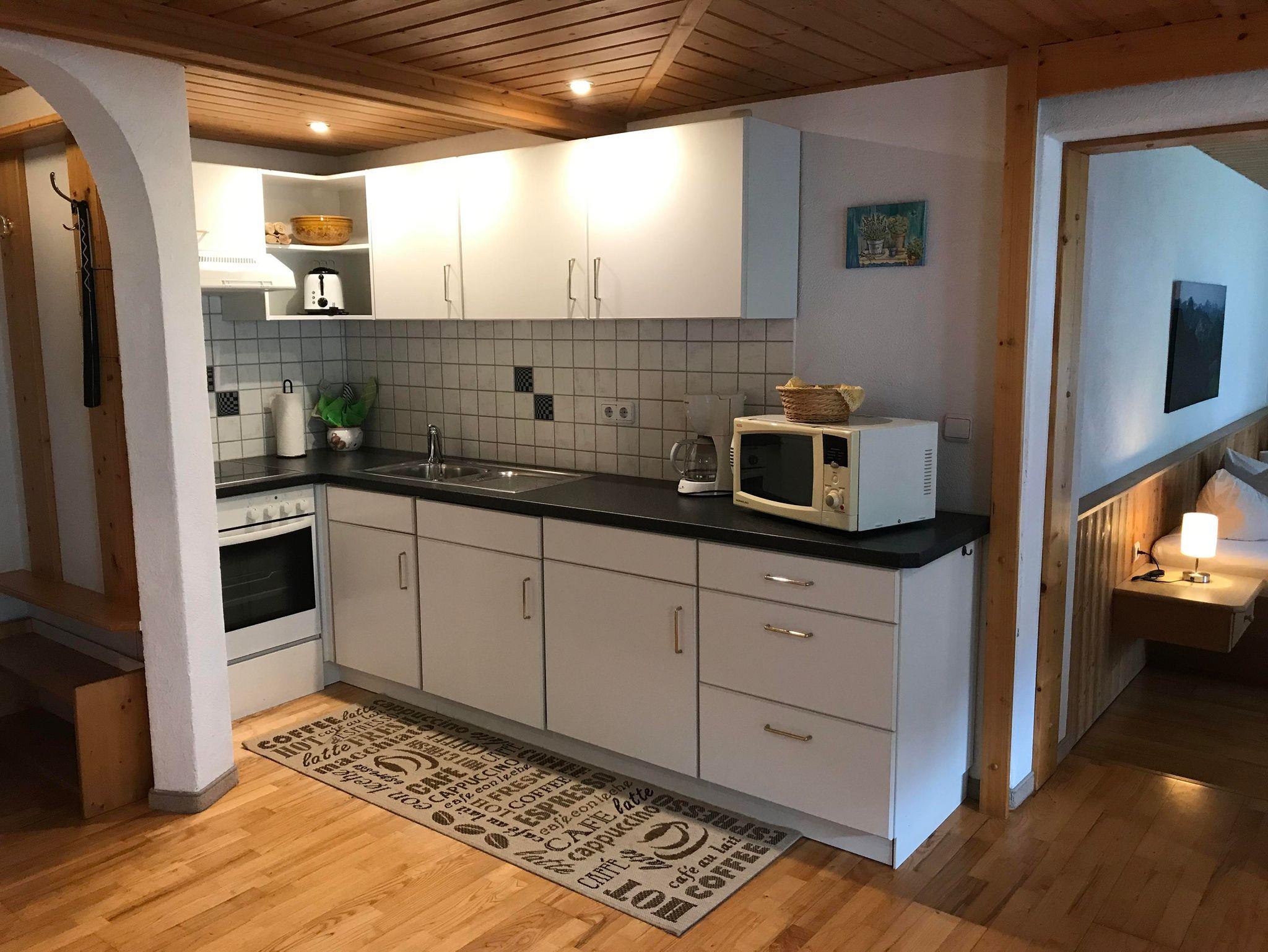 Küchenzeile, Spülmaschine, Backofen,Micro und gemütliche Essecke , große Terrasse mit Garten.