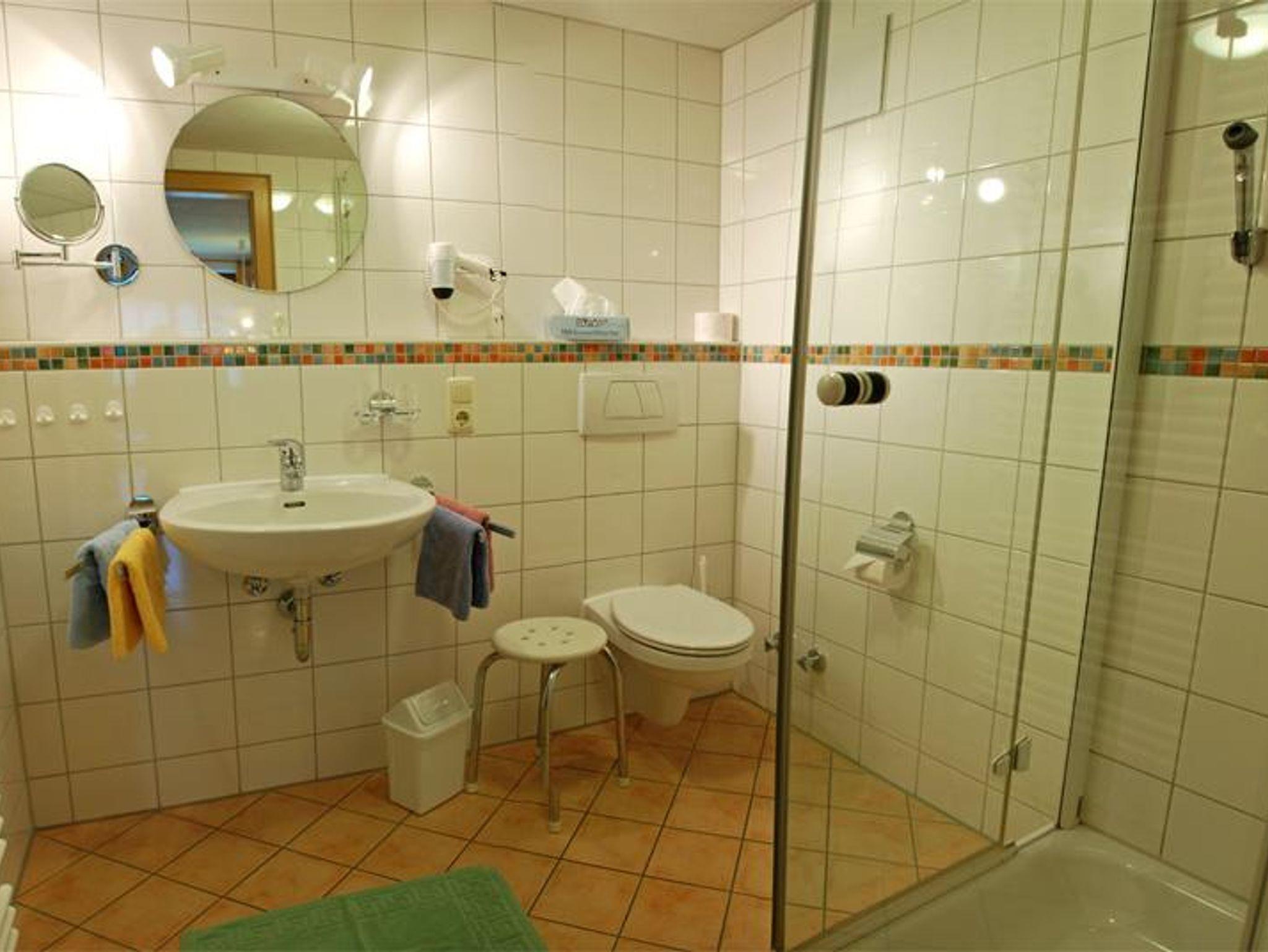 Große, komfortable 4-Sterne Wohnung,ideal für Großfamilie, Balkon, herrlicher Blick in die Berge, 2 separate Schlafzimmer, einmal mit drittem Bett, gemütliche Wohnküche mit gepolsterter Eckbank, Flachbildschirm, Radio, WLAN-Internetanschluss, Küchenzeile mit 4-Plattenherd, Backofen, Kühlschrank, Spülmaschine, Kaffeemaschine, Wasserkocher , Toaster, Eierkocher, reichlich Ess- und Kochgeschirr, 2 separate Badezimmer, Dusche mit Kneippgießhandstück, Waschbecken und WC, Bett- Frottee u. Küchenwäsche