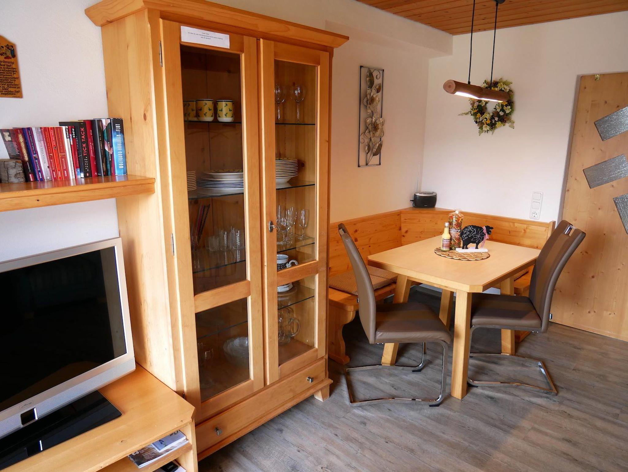 Esszimmer, Radio, WLAN, Flachbildschirm, kl. Balkon südseitig. O.G. gemütliches Wohnzimmer, ein Schlafzimmer mit Doppelbett und Schlafsessel für ein Kind bis 15 Jahren, Dusche und WC getrennt, Haarfön, Bettwäsche, Handtücher vorhanden, buchbar für 2 Erw. & ein Kind.Treppensicherung für Kleinkinder !