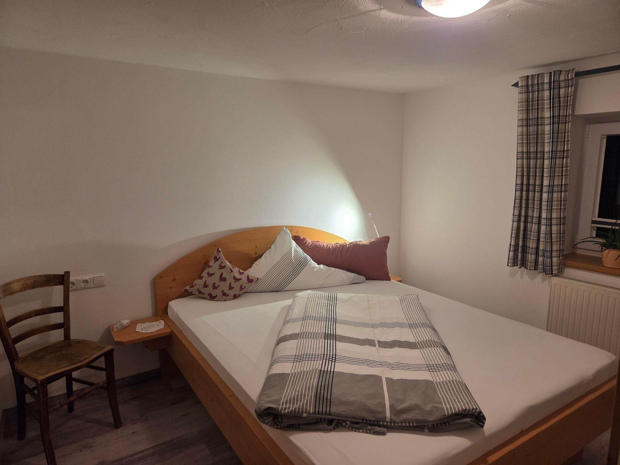 Wohnung Nr. 4 Hühnerstall 66m², helle geräumige Wohnküche, mit allen E-Geräten, ein großes Schlafzimmer NEU, Boxsprinbett kleines Zimmer, Bett 160mbreit, ideal für getrennt schlafende Paare oder einem Kind. Es besteht die Möglickeit ein Reise-oder Gittebett zu stellen, großes Bad mit Wanne/ Duschabtrennung, Wickelauflage und Fenster. Rundum Bergblick! 1. Etage aber ebenerdig begehbar. Belegung maximal 3 Personen. Freies WLAN.