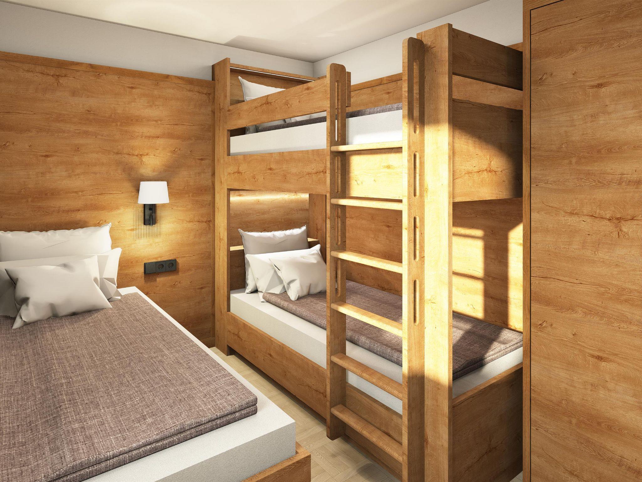 zwei getrennte Schlafzimmer, einmal Doppelbett, einmal 3 Betten,