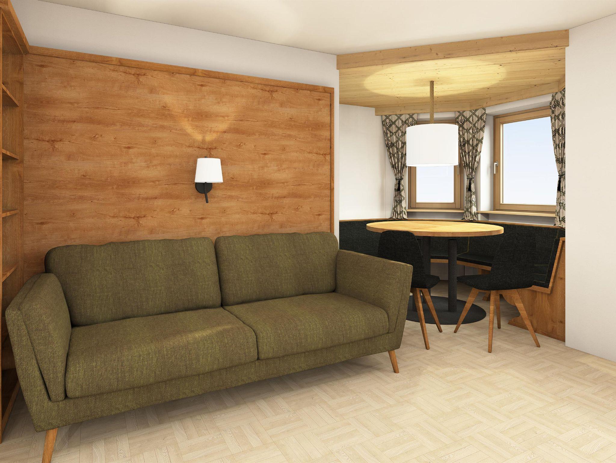 Wohnraum mit Erker, Sitzecke und Kochnische,