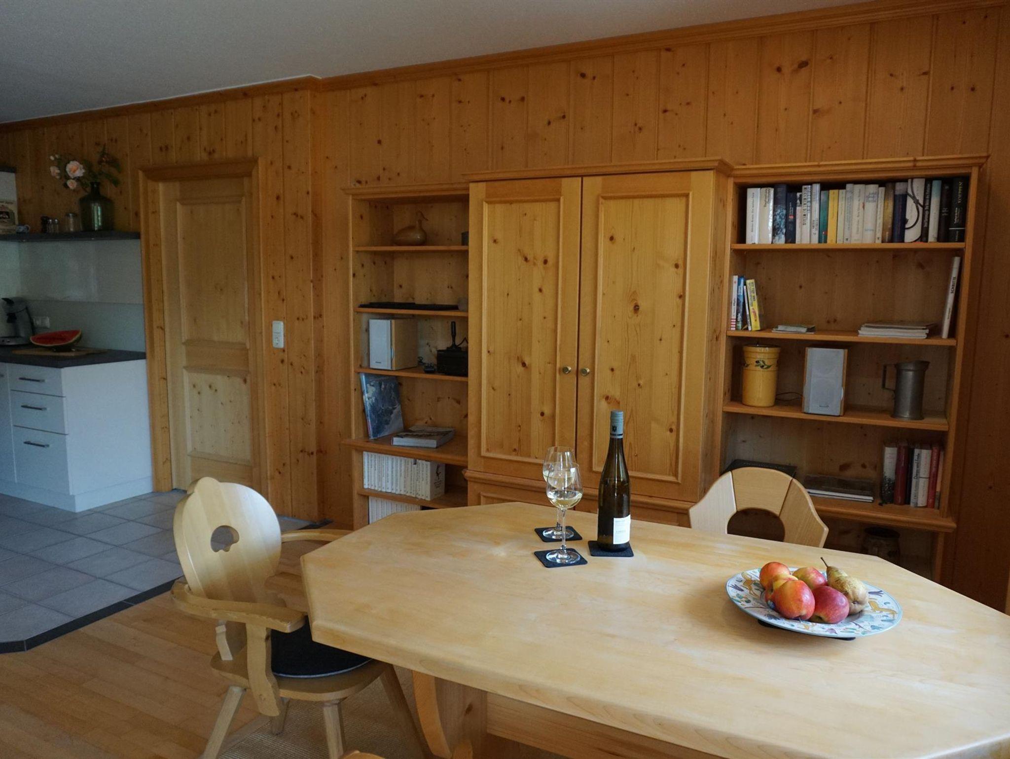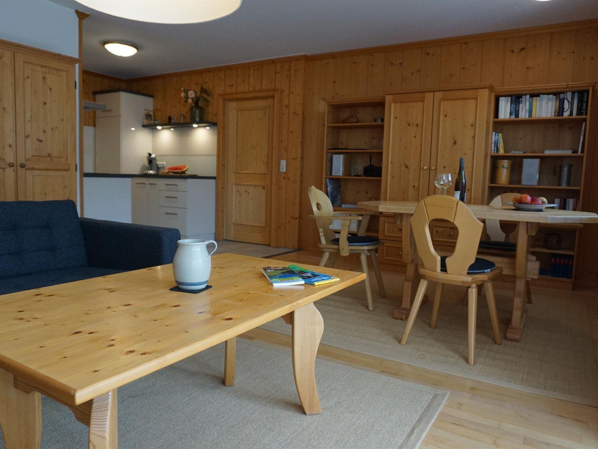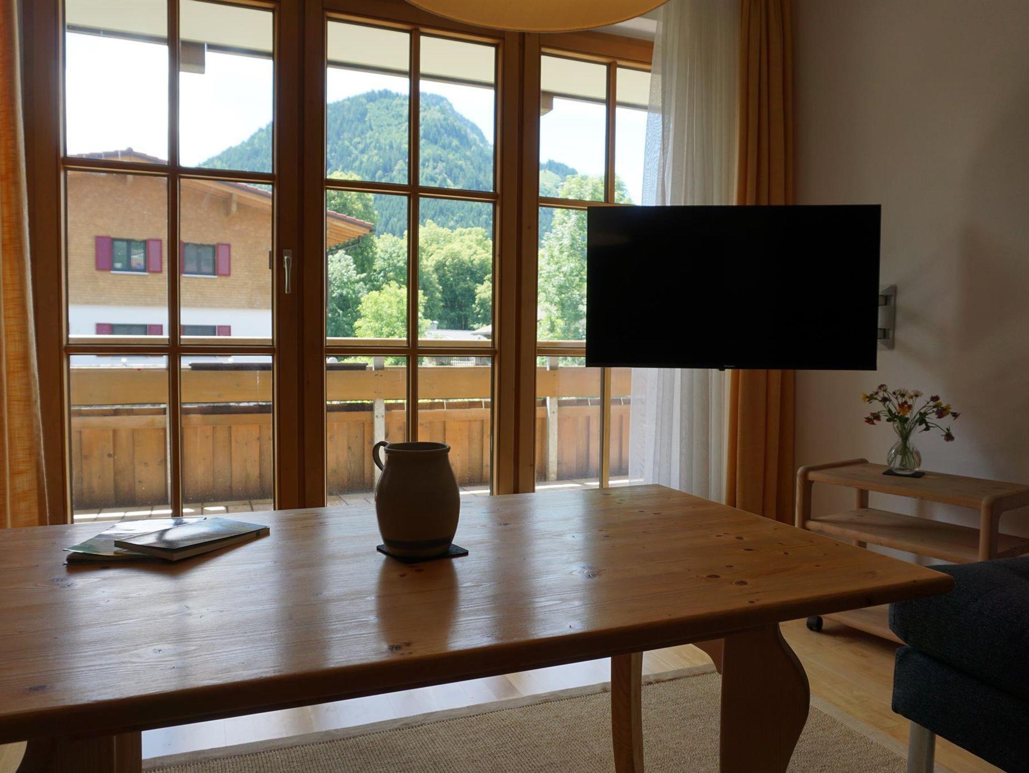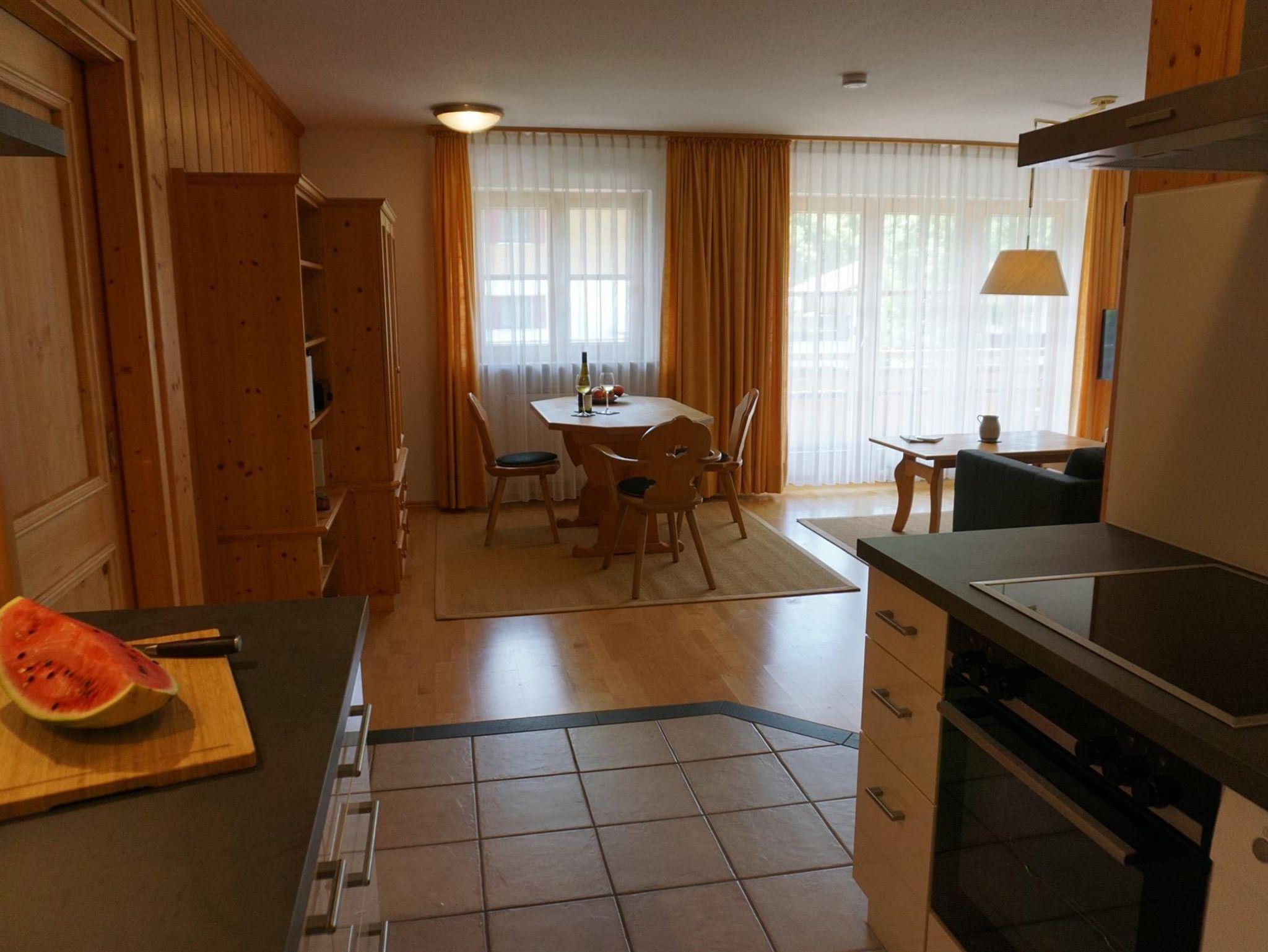 Schöne helle Ferienwohnung (1.OG kein Aufzug, 62qm) mit Tiefgaragenplatz (schnee-/hagelsicher) und wettergeschütztem Südbalkon (12qm) mit Bergblick. Hochwertige Einrichtung/Ausstattung (SmartTV, freies WLan, Vollholzmöbel, Parkett, Schreinerküche mit Markengeräten). Wohnung wurde 2021 komplett renoviert/saniert. Neues Bad mit großer Dusche, Schlafzimmer mit Doppelbett, Gäste-WC, Flur mit Garderobe, großer Wohnraum (32qm) mit offenem Koch-/Essbereich und Balkonzugang.