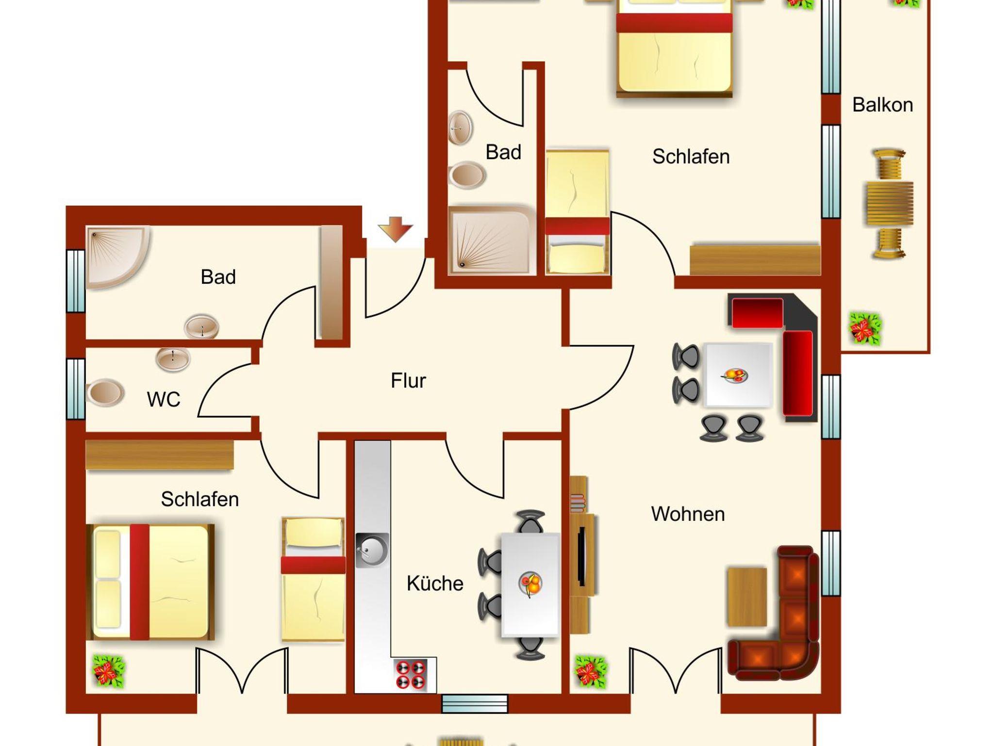 2 Bäder mit Dusche,Waschbecken,WC