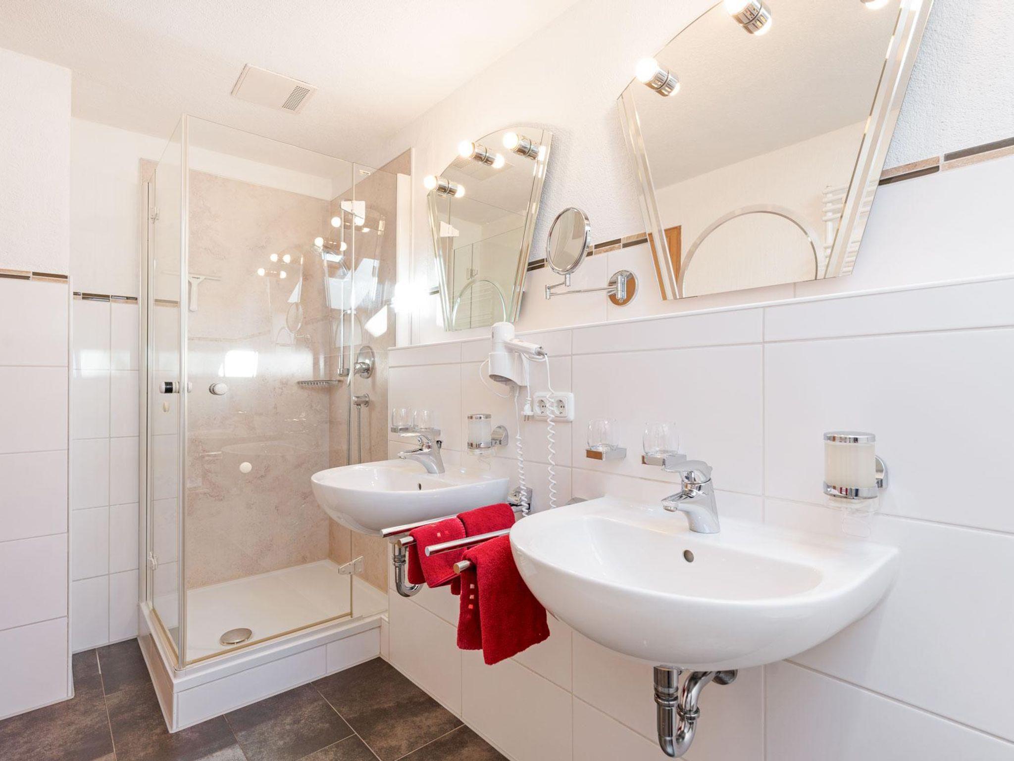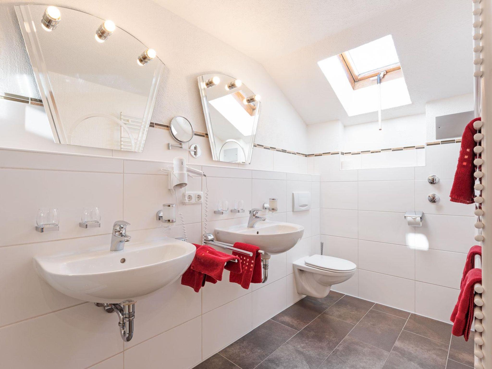 * Wohnzimmer, Küche, Dusche/WC (zwei Waschbecken), Schlafzimmer (Himmelbett), Kinderzimmer
