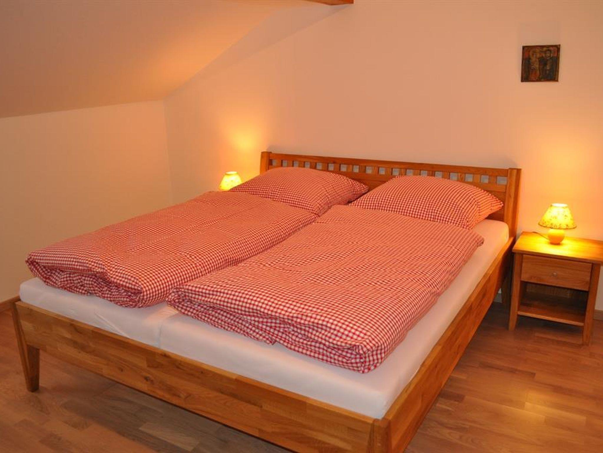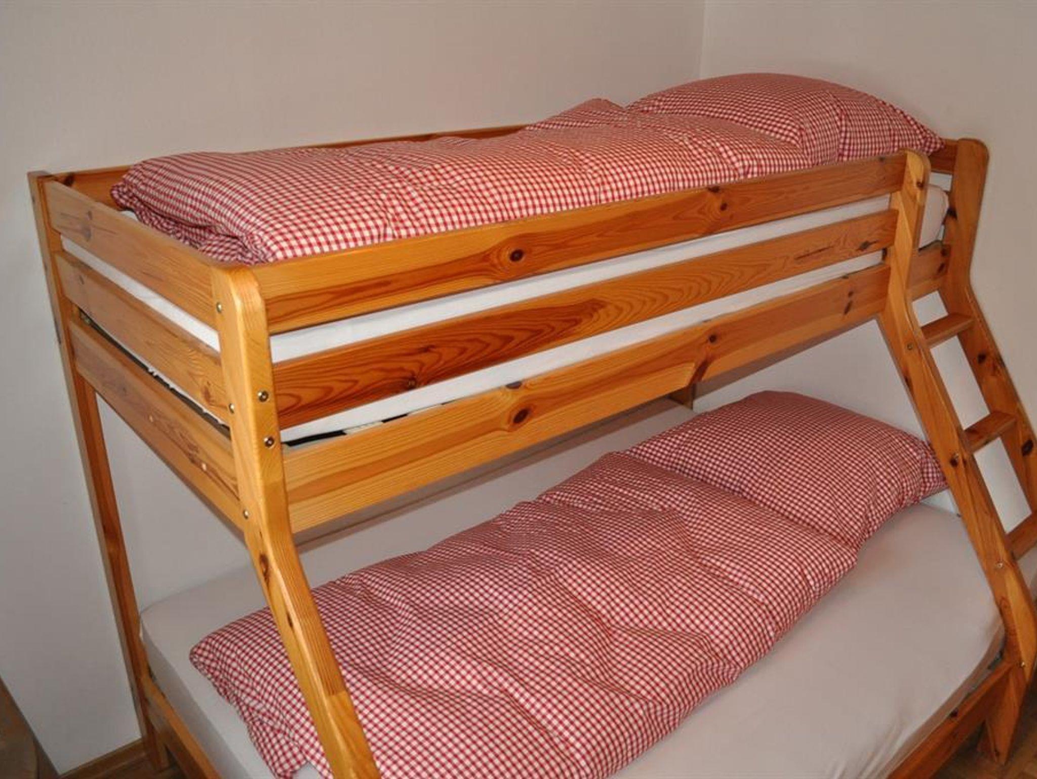 Geräumige Ferienwohnung für 2-5 Personen mit Südbalkon. Zwei sep. Schlafräume, davon ein Doppelschlafzimmer und ein Schlafzimmer mit Stockbett. Komplett ausgestattete, neuwertige Küche im Wohnbereich mit gemütlichem Essplatz. Badezimmer mit Dusche und WC. Eigener Eingang ebenerdig.