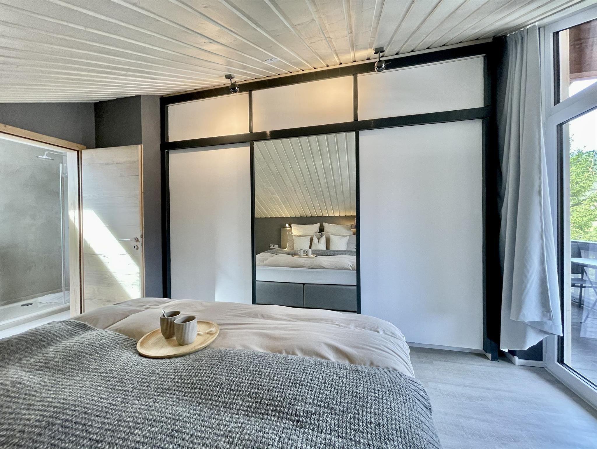 Die FeWo Panorama eignet sich hervorragend für Familien oder Freunde*innen. Sie verfügt über 85qm und einen Balkon. Über den Gangbereich gelangen Sie in 1 Schlafzimmer, 1 Wohn-/Esszimmer, eine Küche und 1 Badezimmer vom welchem Sie in das zweite Schlafzimmer gelangen. Den Balkon erreichen Sie sowohl über das Wohn-/Esszimmer als auch über eines der Schlafzimmer. 1 Schlafzimmer verfügt über ein Doppelbett, das Andere über 2 französische Betten(140x200) und einen Waschplatz mit beleuchtetem Spiegel