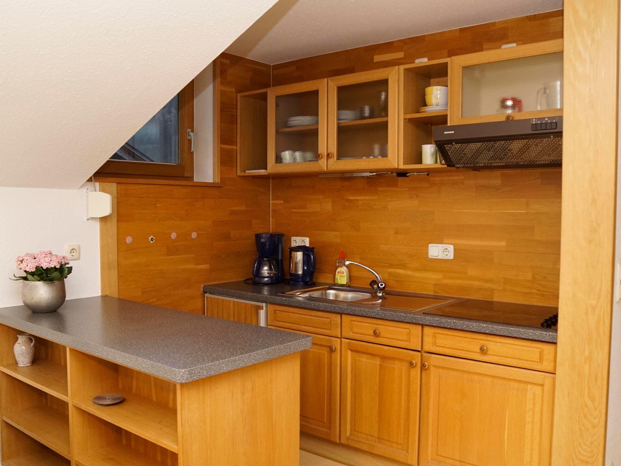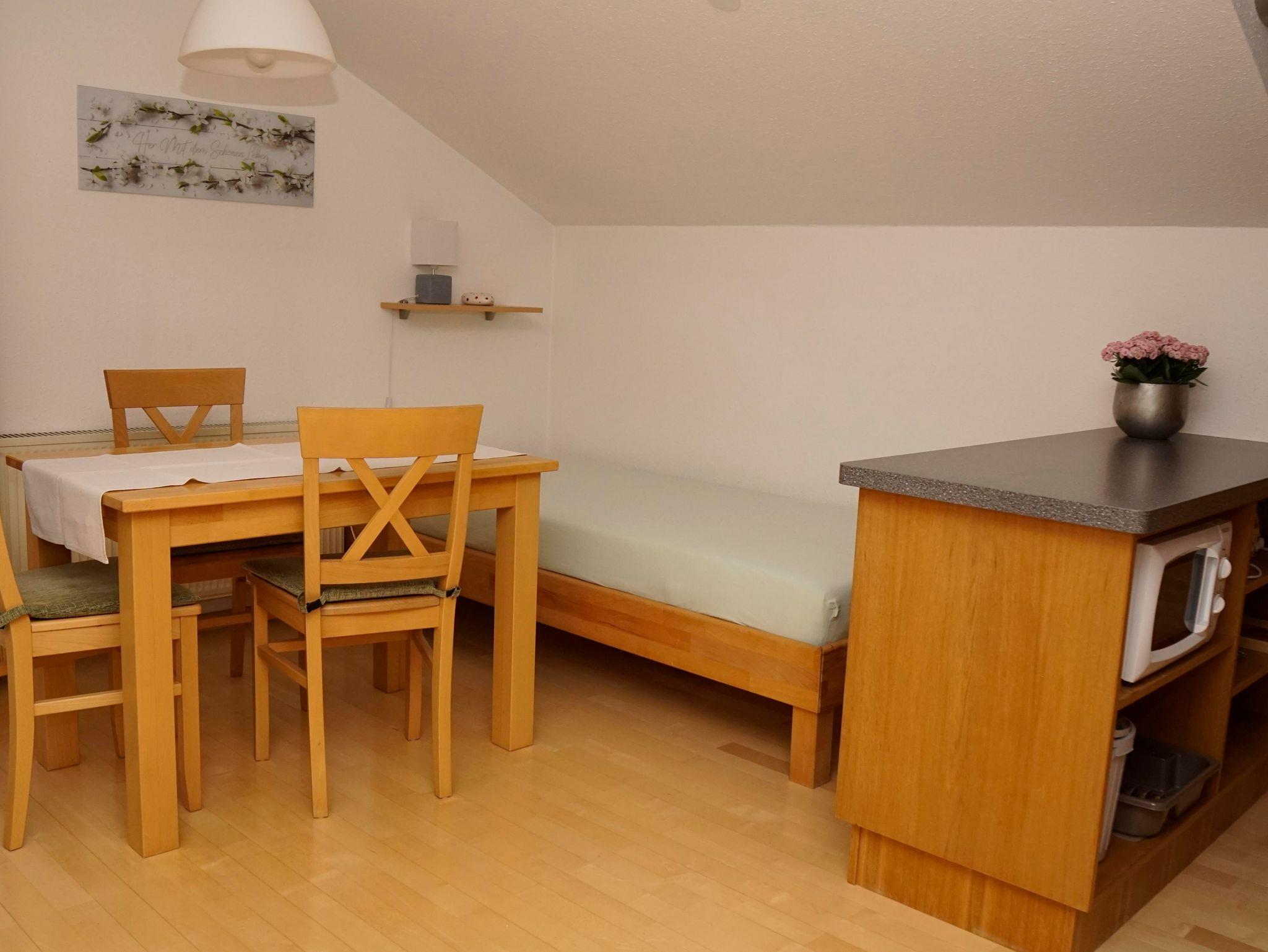 Ihre Ferienwohnung liegt im 1. Stock und besteht aus einem Wohnraum mit Küchenzeile, 1 separates Schlafzimmer (Einzelbetten - zusammen schiebbar), zusätzliche Schlafmöglichkeit im Wohnraum, einem Badezimmer mit Dusche/WC und einem Südbalkon mit Panoramablick auf die schönen Allgäuer Alpen. Die Wohnung ist komplett mit Parkettfußboden ausgestattet. Fernseher und Balkonmöbel sind natürlich vorhanden. Internetzugang per WLAN möglich.