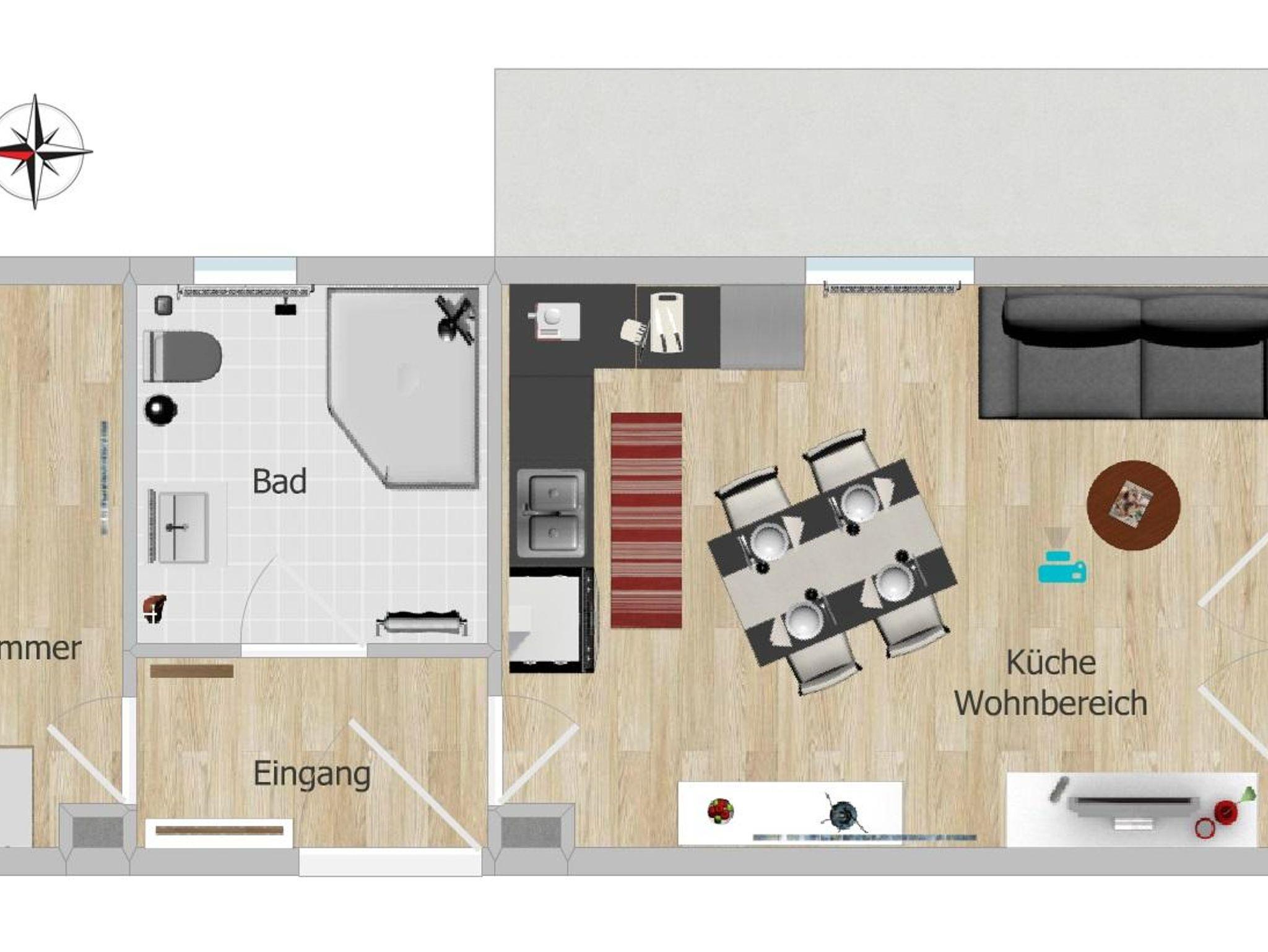 Die Ferienwohnung bietet Dir ein angenehmes Schlafzimmer mit großem Doppelbett und geräumigem Kleiderschrank. Im Wohn- und Essbereich steht Dir eine moderne Küche, ein Esstisch und ein gemütliches Sofa zur Verfügung. Kabel-TV und ein eigenes W-LAN runden den Wohnbereich ab. Das kleine Bad mit Dusche/WC ist hell gestaltet. Besonders hervorzuhaben ist der große Eckbalkon mit Sitzgarnitur an dem man die spannenden Tage ausklingen lassen kann. Euer Auto steht sicher auf einem Tiefgaragenstellplatz.