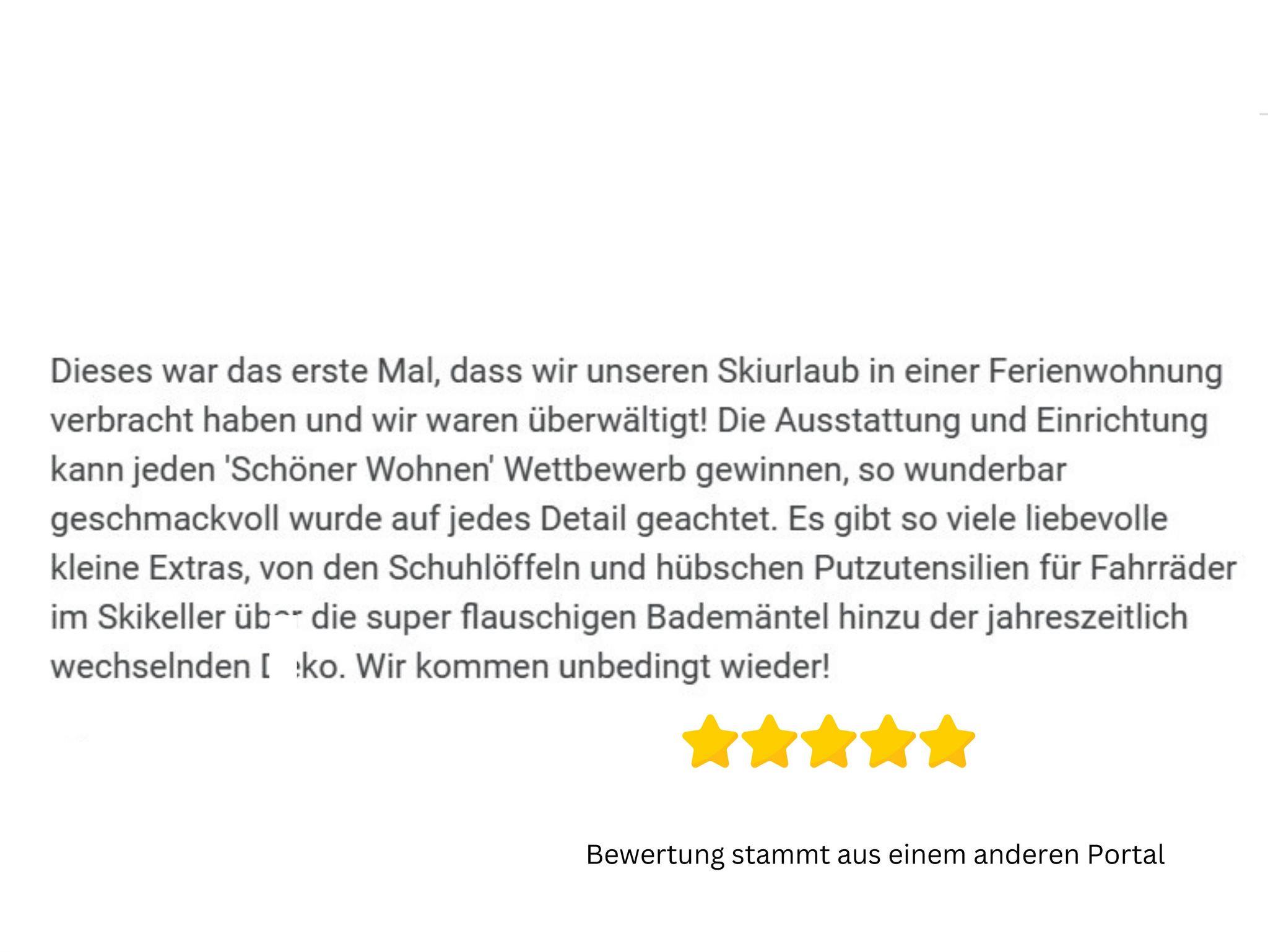 Als Allergikerfreundliche Unterkunft möchten wir Ihnen und Ihren Liebsten einen Erholungsort bieten, bei dem sich Qualität, Tradition, Moderne, Gemütlichkeite, Wohlgefühl, Stil und Detailliebe verbinden. Nutzen Sie unsere zwei E-Ladestationen für Autos oder entspannen Sie sich im Garten. Mit der Gästekarte genießen Sie zudem zahlreiche Gratisleistungen, z.B. Gratis Skipass, Gratis Bergbahn, u.v.m. in der Region, die die Schönheit der Natur abrunden.