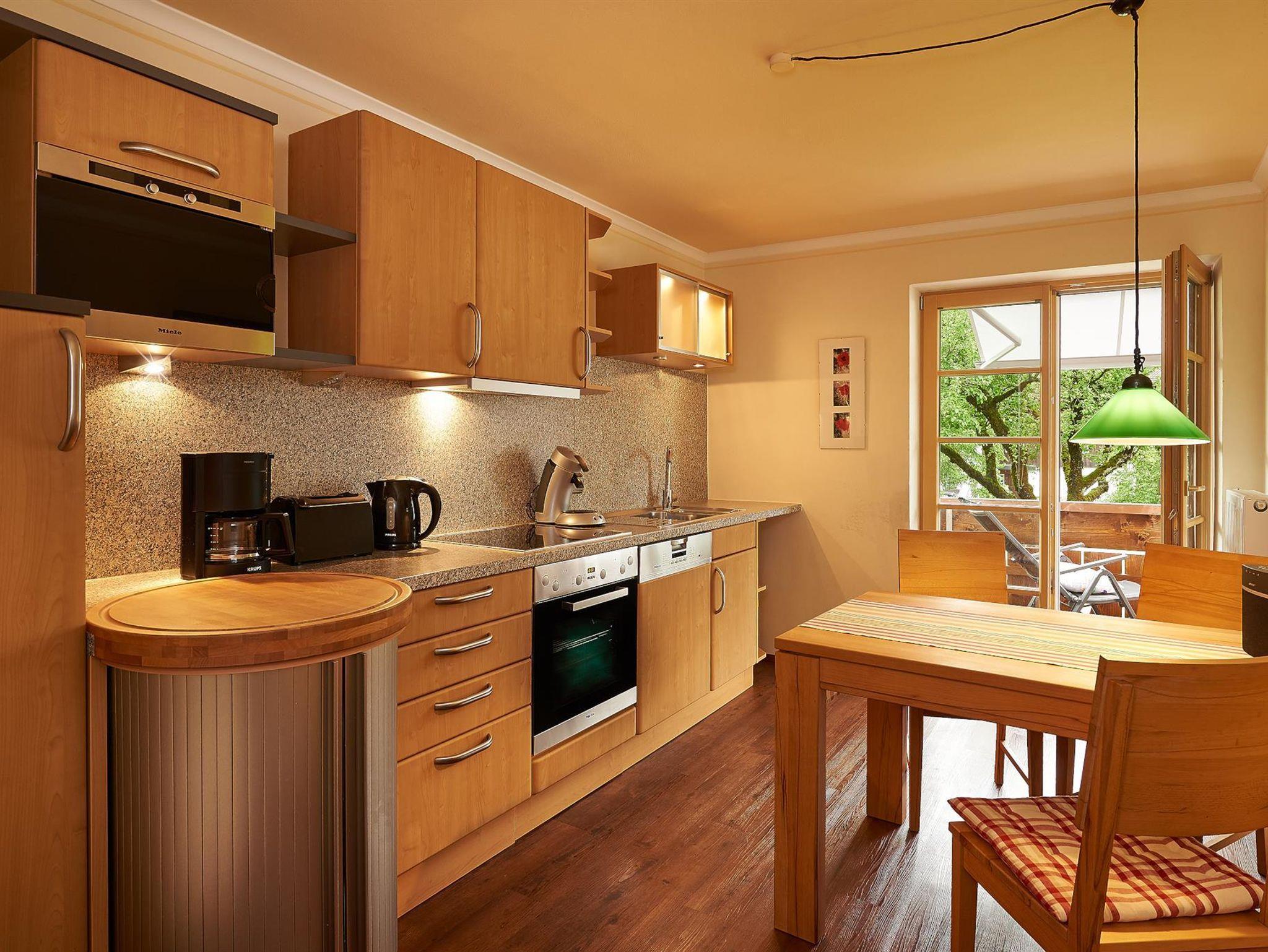 großzügig komfortable Ferienwohnungen mit großen Südbalkonen und Markise (freier Garten- und Bergblick), Wohnküche (Spülmaschine, Ceranfeld, Backofen), geräumigem Wohnzimmer, separate Schlafzimmer mit bestem Schlafkomfort (Boxspringbetten in Komforthöhe); neue Bäder mit separatem WC; geräumige Parkplätze direkt am Haus; Handtücher und Bettwäsche inklusive.
