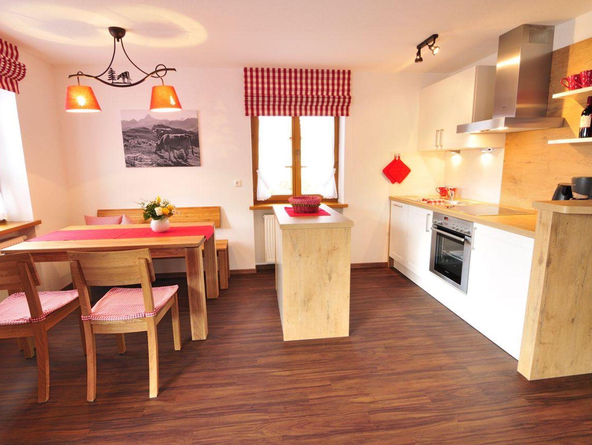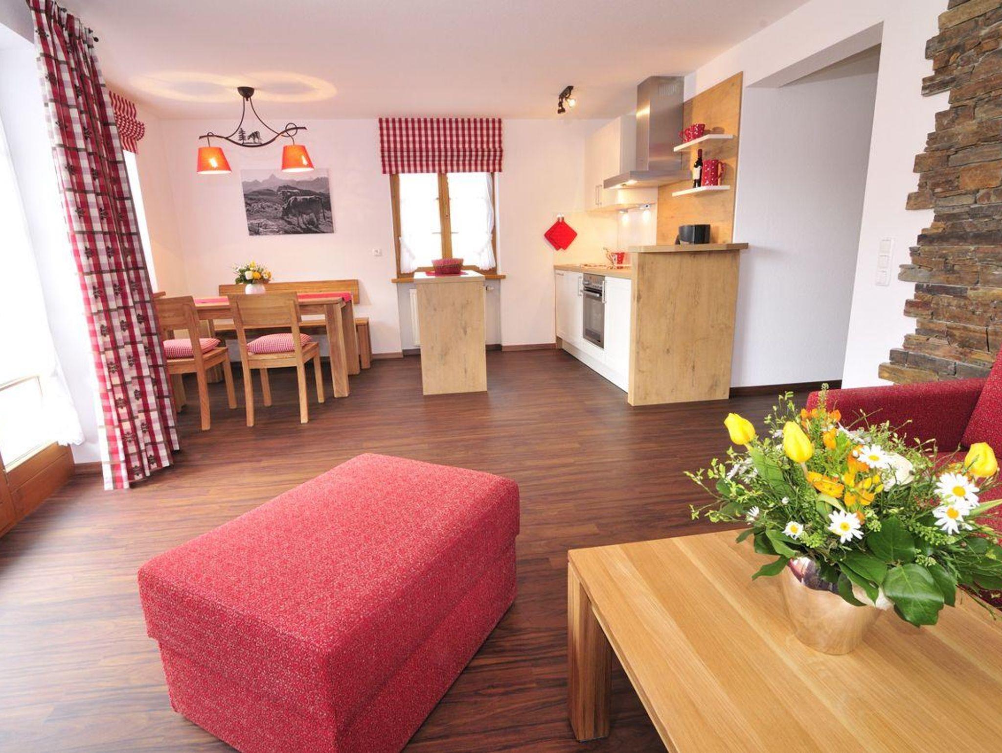 Die Wohnung Abendrot ist 62 m² groß, modern und doch traditionell eingerichtet. Ideal für 2 - 3 Personen. Zirbenholzmöbel im Schlafzimmer (Betten mit Komforthöhe) sorgen für schöne Träume. Hochwertig, gemütlich und vollständig eingerichtet ist unsere Wohnküche. Die Wohnung verfügt über einen separaten Eingang, einen Westbalkon, Flachbild-Kabel-TV, WLAN, Radio und Parkplatz direkt am Haus. Kinder sind bei uns herzlich Willkommen.