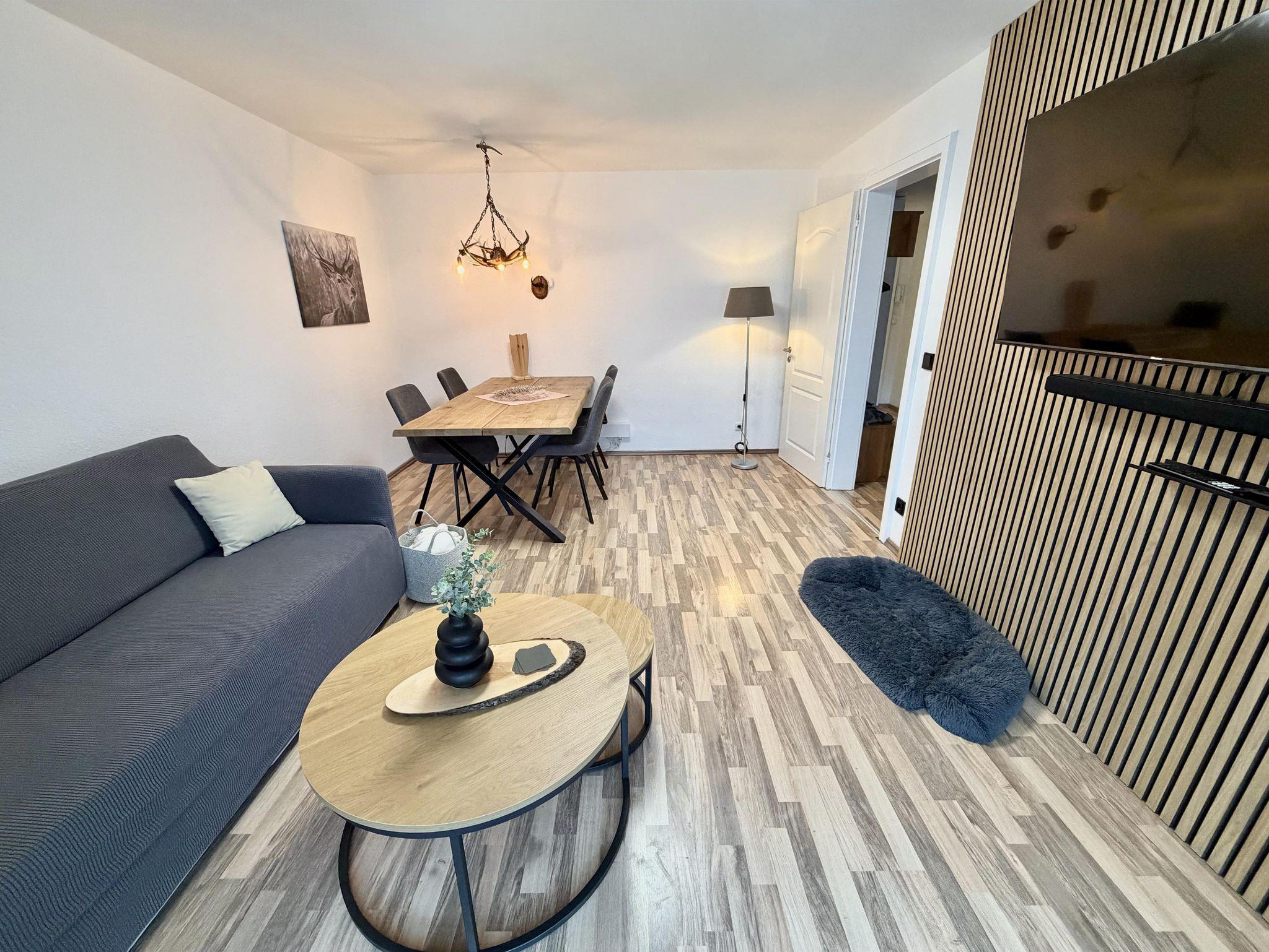 Die Wohnung hat zwei Fernseher mit jeweils 55 Zoll (Schlafzimmer und Wohnzimmer) und jener im Wohnzimmer ist mit einer Bluetooth-Soundbar verbunden.