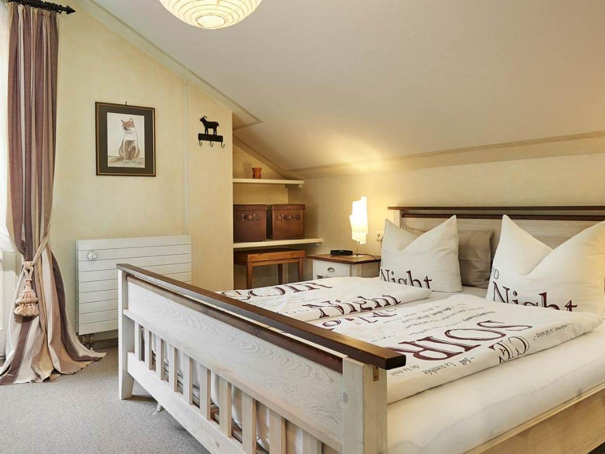 Die Ferienwohnung Stefanie befindet sich im 1. Stock (Dachgeschoss) unseres Hauses. Im separaten Schlafzimmer mit Doppelbett ist ein zweiter Fernseher. Vom Schlafzimmer kommen Sie auch auf den Südwest-Balkon mit Abendsonne. Das Wohnzimmer ist sehr geschmackvoll eingerichtet. In der separaten Küche finden Sie alle wichtigen Geräte. Im Badezimmer ist eine Badewanne mit Wannentüre und Duschmöglichkeit, WC, Waschbecken und Fön. Haustiere nur auf Anfrage erlaubt (15 Euro / Nacht)