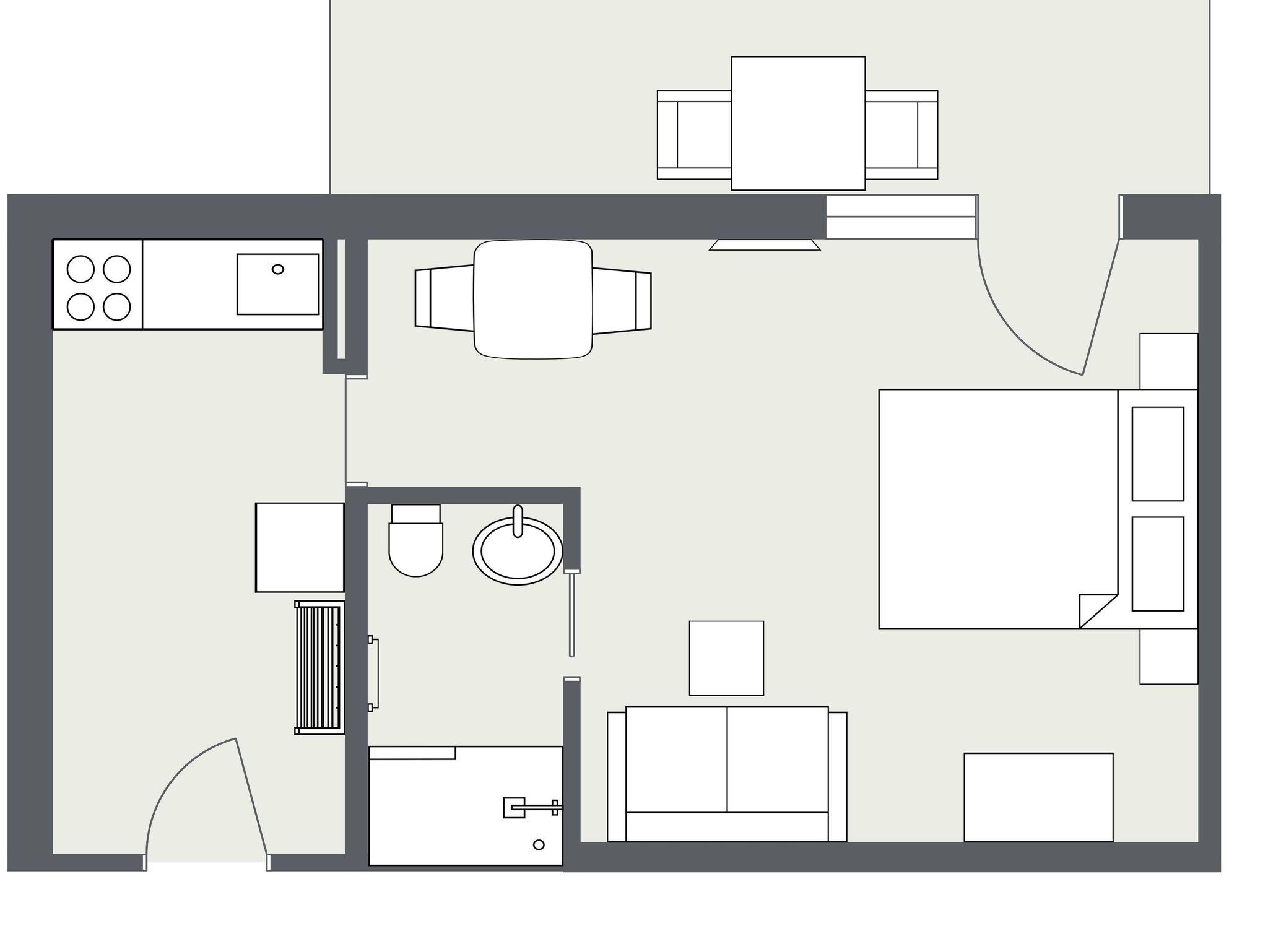 Unsere Ferienwohnung Spieser eignet sich hervorragend für 1-2 Personen. Sie verfügt über eine Grundfläche von 32 Quadratmeter und einen Balkon. Durch den Eingang gelangen Sie durch eine Garderobe und die Küche in das Wohn-/ Ess-/ Schlafzimmer. Dieses bietet eine Couchecke, einen Esstisch für 2 Personen, einen 32 Sat TV, eine Bluetooth Soundbar, ein Doppelbett (160cm x 200cm), einen Kleiderschrank, Verdunkelung und mehrere Beleuchtungsmöglichkeiten. Von hier aus gelangen Sie auch auf den Balkon.