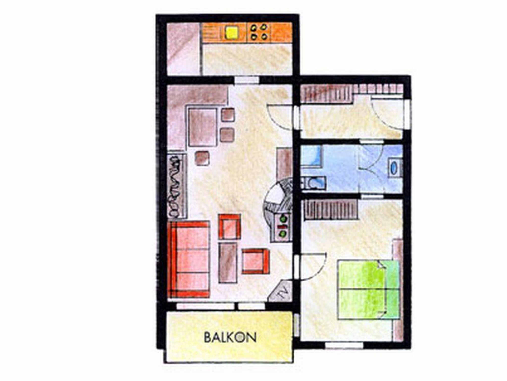 Diese 60 qm große, 4-Sterne-Ferienwohnung für 2 Personen mit W-LAN und innen liegendem Balkon hat besonders zur etwas kühleren Jahreszeit ihren Reiz. Der herrliche Kamin im Wohnzimmer lädt zum Entspannen und Relaxen ein. Hier gibt es auch einen großen Essplatz und eine Sitzgruppe. Die abgeschlossene Küche verfügt über Herd, Spülmaschine, Microwelle, Eier- und Wasserkocher. Die Dusche mit WC ist sowohl von der Diele wie auch vom romantischen Schlafzimmer aus zu erreichen.