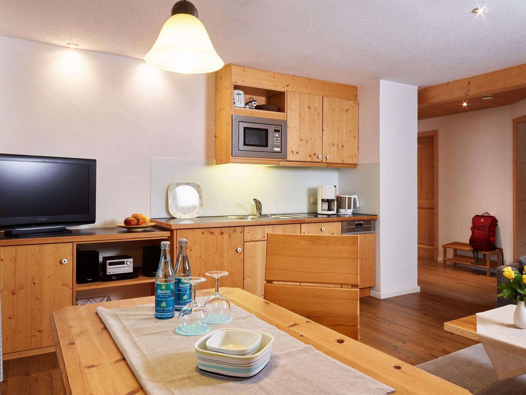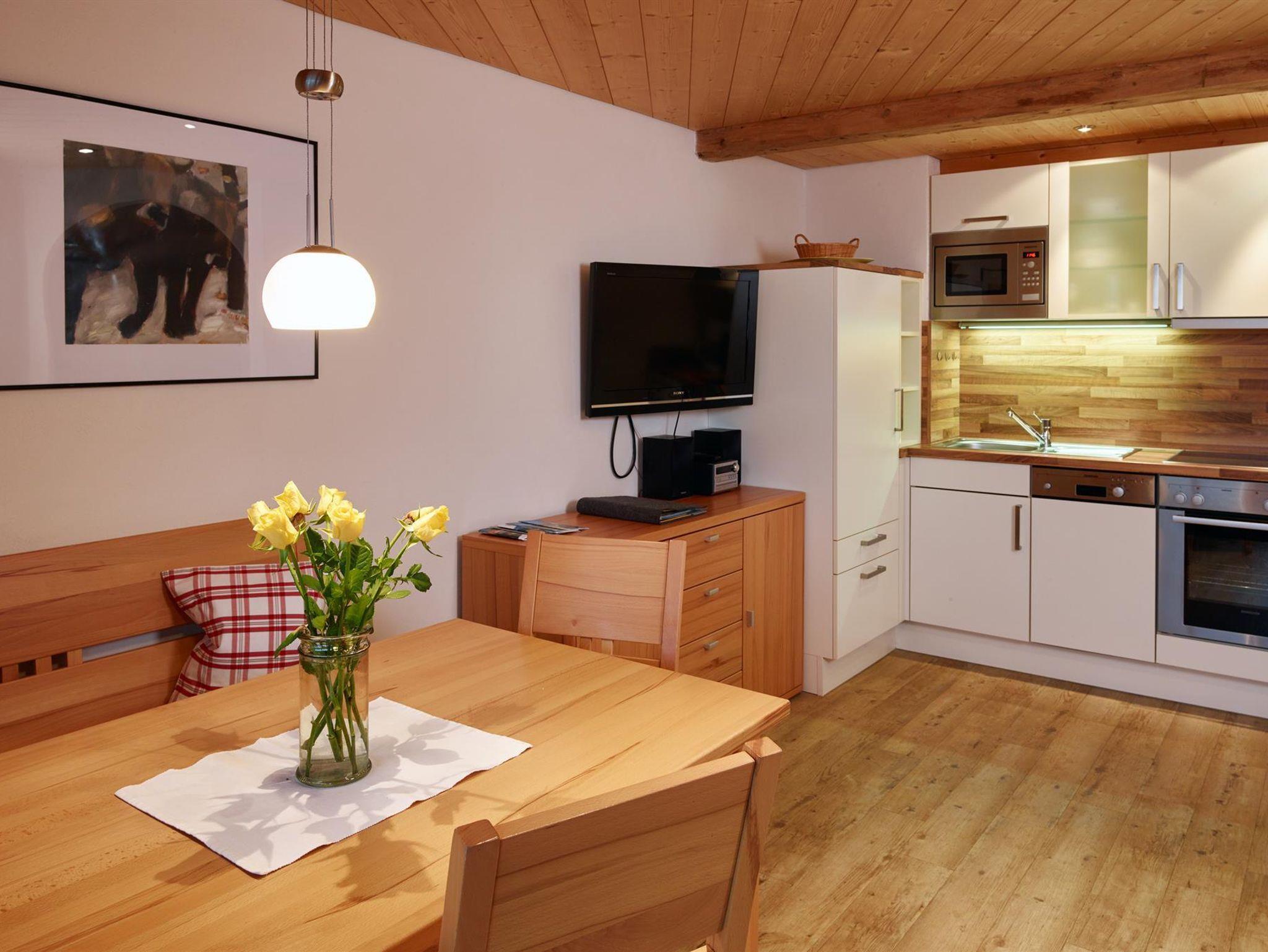 Die allergikerfreundliche 4*Wohnung ist 35qm groß, verfügt über 1 sep. Schlafzimmer (Betten mit Komforthöhe und 2,10 m Länge), DU/WC, einem großen Wohnraum mit Sitz-und Eßecke und komplett eingerichteter Kochnische, großer, überdachter Südbalkon mit freiem, traumhaften Bergblick.Getrennte Schlafmöglichkeit vorhanden.