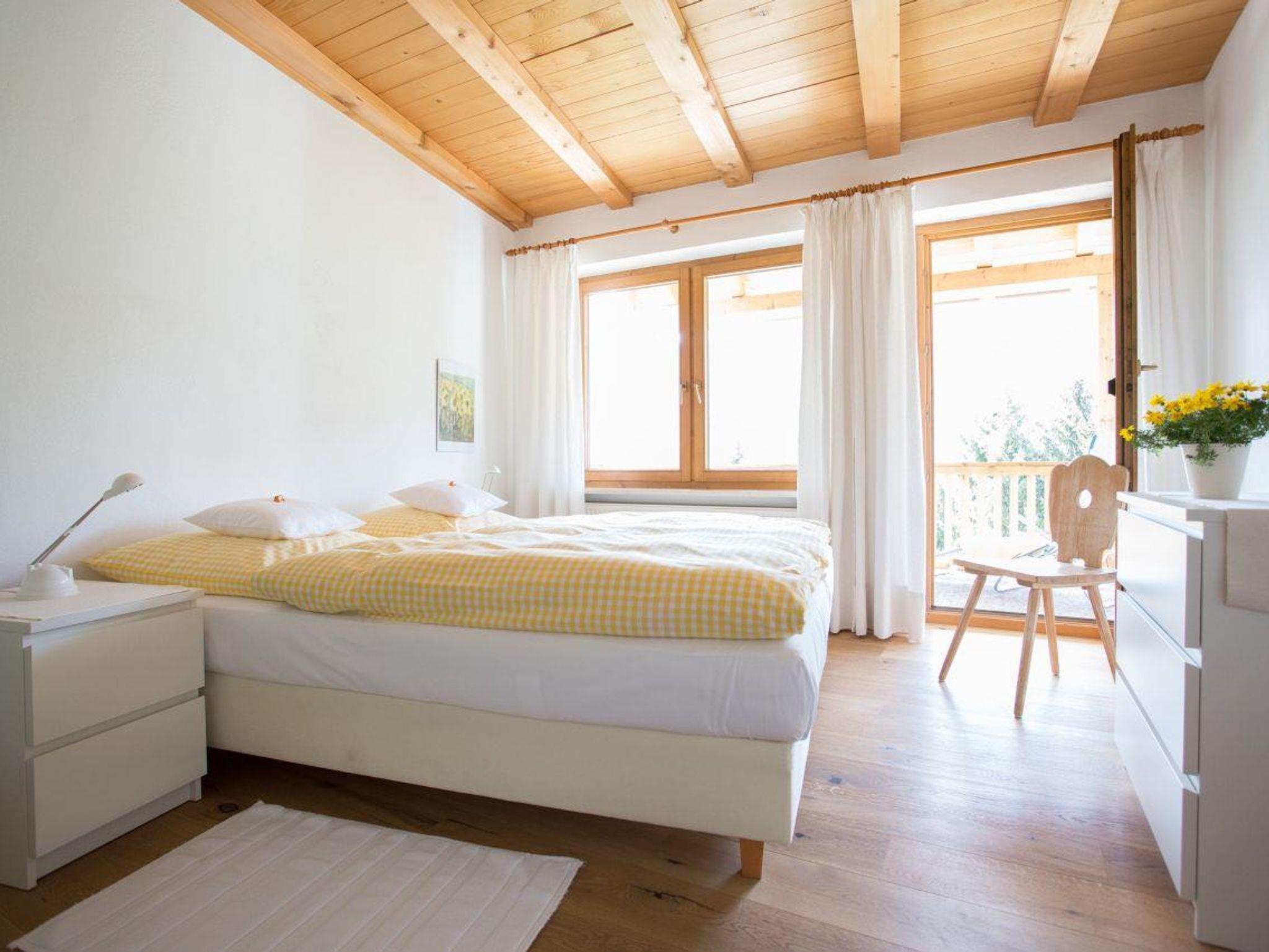 Eingangsetage mit Garderobe, Duschbad und 2 Schlafzimmern, eines mit Südbalkon. Landhausdielen und unbehandelte Holzdecken.