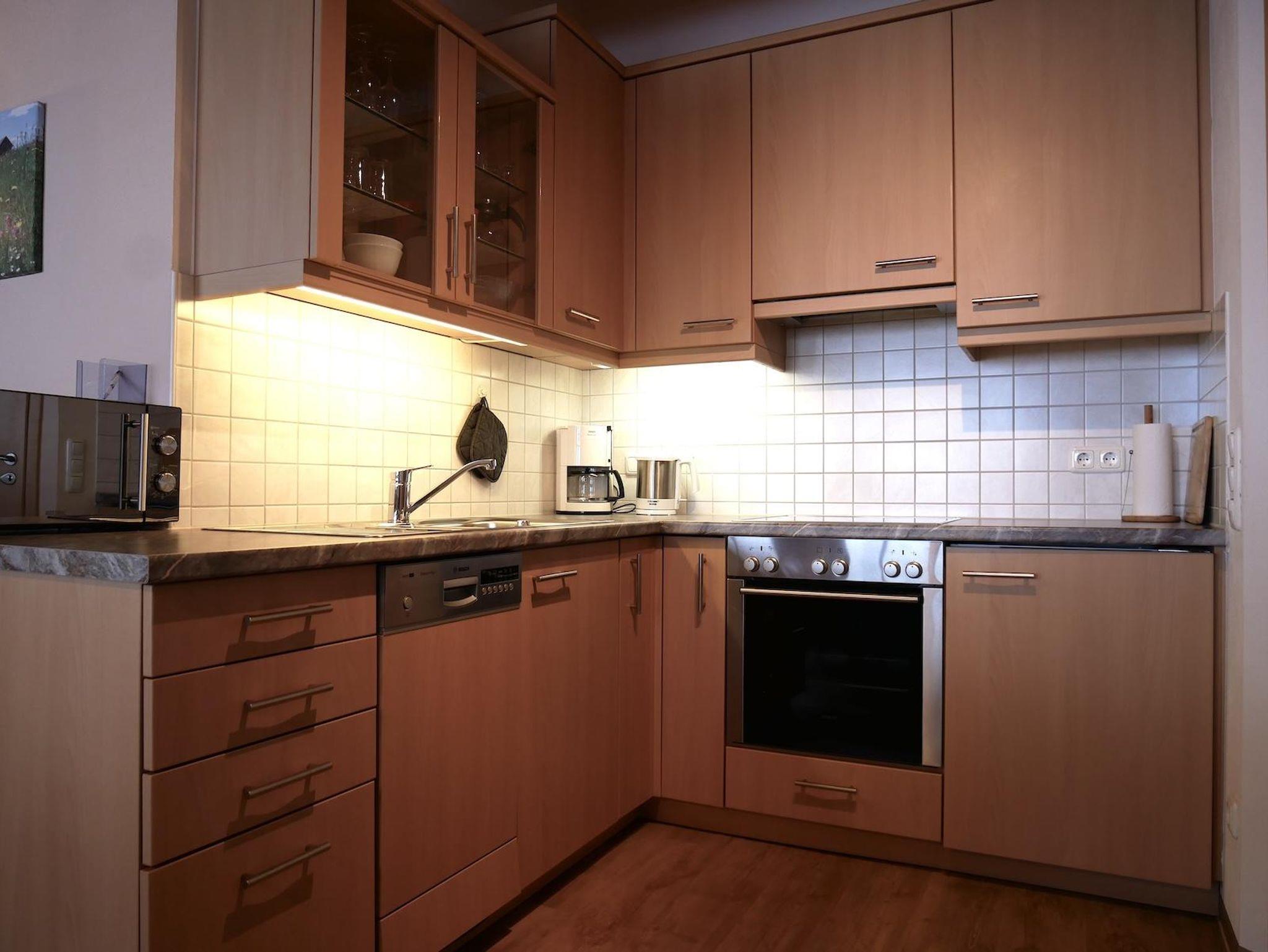 Liebevoll eingerichtete Ferienwohnung für 1 - 4 Personen. Im gemütlichen Wohnzimmer mit Essecke fühlt man sich sofort wie Zuhause. Die Wohnung ist ausgestattet mit zwei Schlafzimmern (Zustellbetten möglich).Die Küche ist mit Backofen , Ceranfeld, Spülmaschine, Kaffeemaschine, Toaster, Wasserkocher, Kühlschrank mit Gerfrierfach ausgestattet. Ausreichend Geschirr steht für sie bereit. Genießen Sie die tolle Aussicht auf herrliche Landschaft vom großzügigen Süd-Westbalkon.