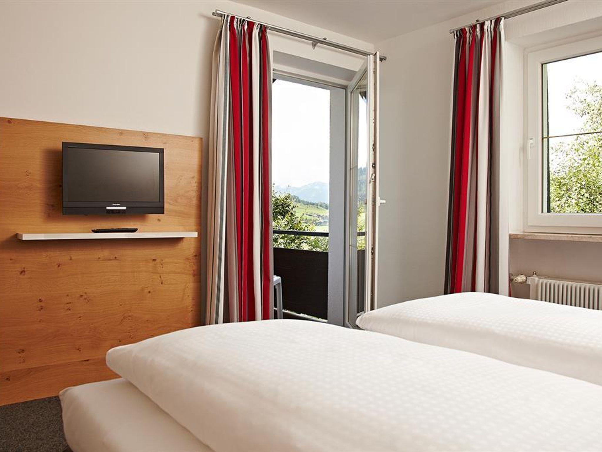 Die Dachgeschosswohnung „Rotfuchs“ befindet sich im 2.Stock, verfügt über 2 separate Schlafzimmer mit Boxspringbetten, Balkon und TV.