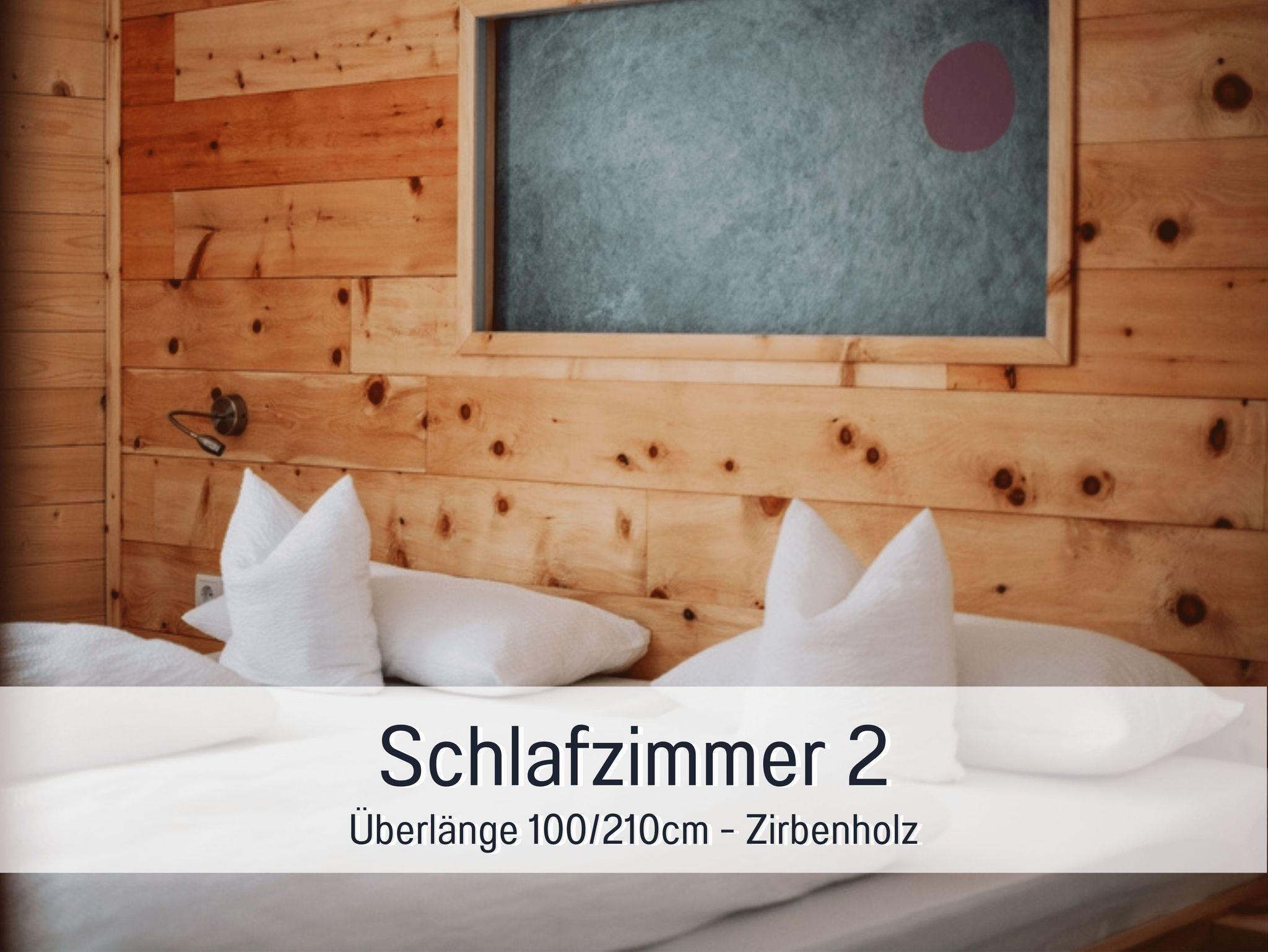 • zwei getrennte Schlafzimmer mit Doppelbetten aus Zirbe in Überlänge