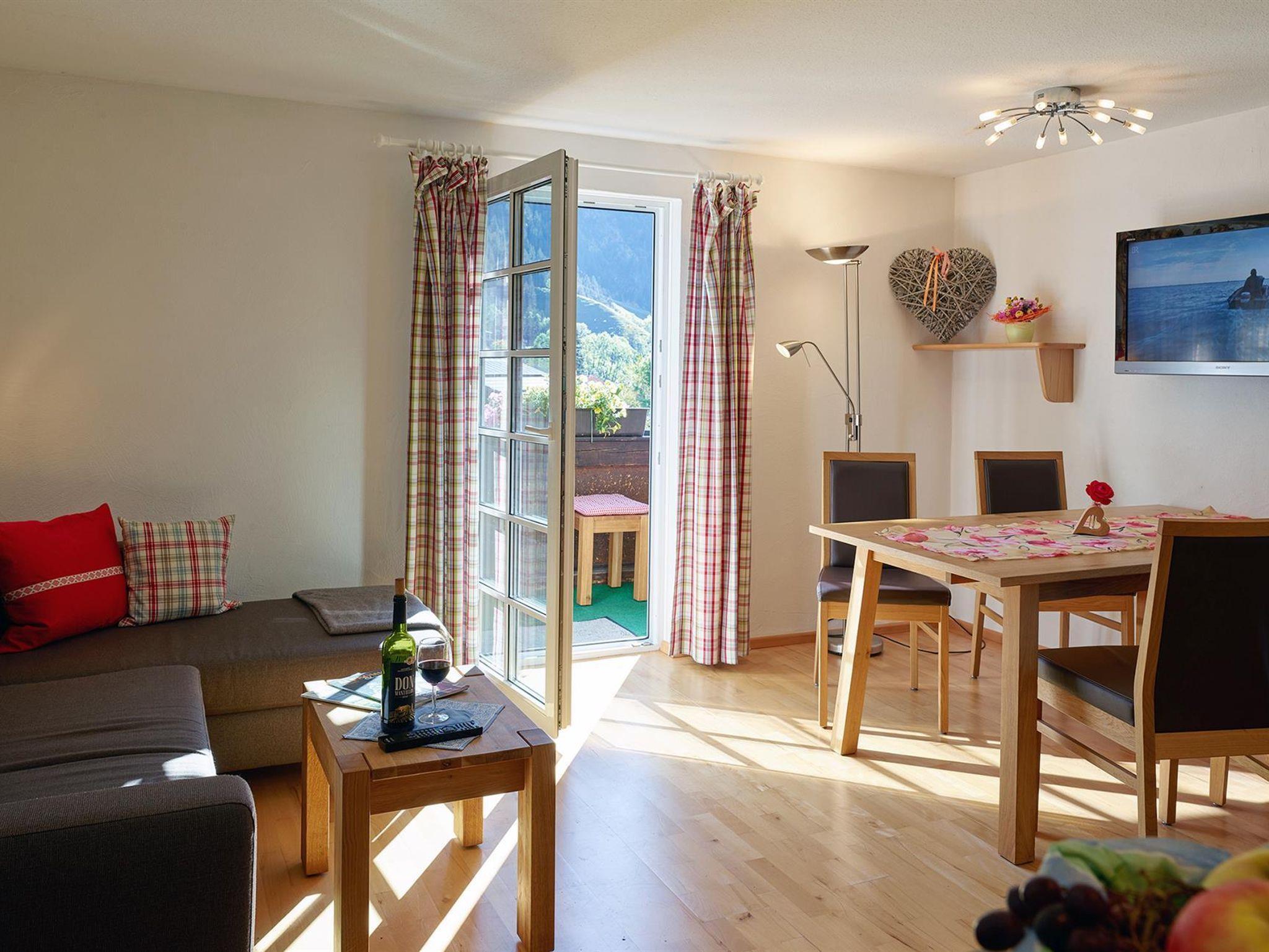 Gemütliche Wohnungen mit 1 oder 2 Schlafzimmer, Balkon und herrliche Aussicht in die schneebedeckten Berge.