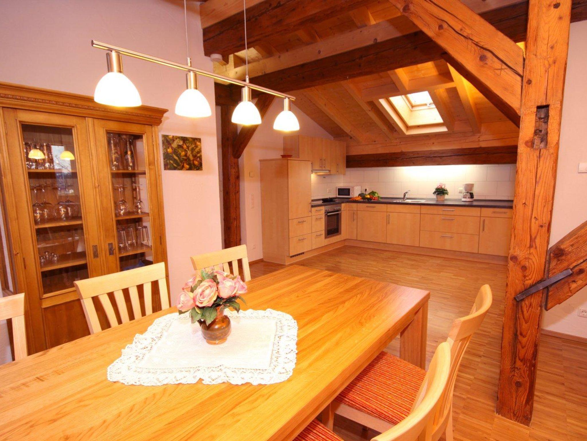 Die 100 qm große, 5-Sterne-Ferienwohnung mit W-LAN, innen liegendem Westbalkon im Dachgeschoß hat zwei Schlafzimmer mit Doppelbetten, eine komplett eingerichteten Küche mit Spülmaschine, die offen zum Essbereich und Wohnraum hin ist. Im sehr geräumigen Wohnraum mit großem Esstisch,einer Couch, zwei bequemen Sesseln,TV und einem herrlichen Kaminofen werden Sie sich bestimmt wohl fühlen. Die Wohnung ist mit Fußbodenheizung ausgestattet, hat Bad mit Dusche,Badewanne und WC und ein separates WC