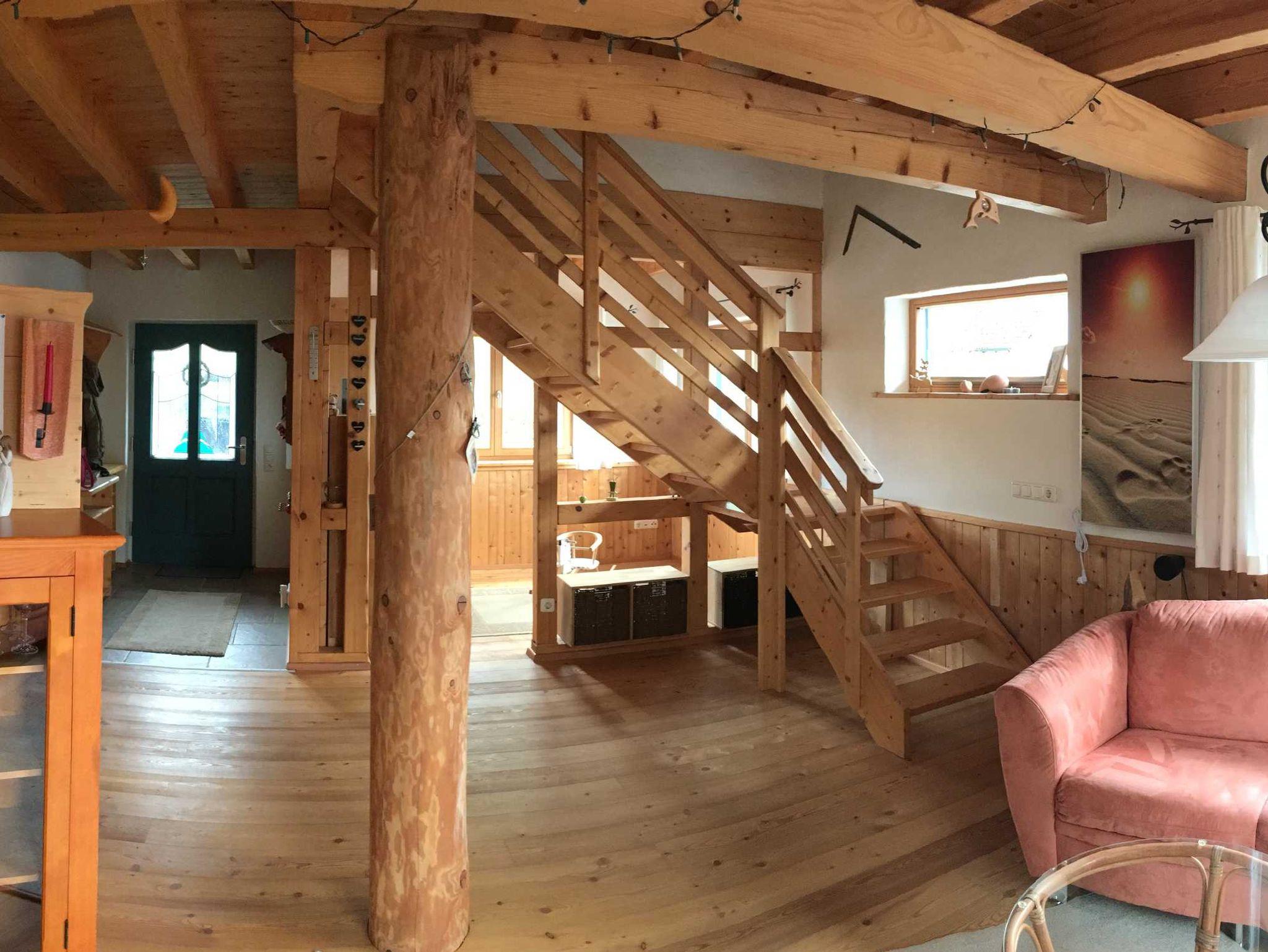 Der Eigentümer hat das Ferienhaus mit sehr viel Liebe fürs Detail vor 11 Jahren komplett selbst gebaut. Ökologische, gesunde Baustoffe waren ihm wichtig. Holz, Lehmputz und Korkfußböden geben den Räumen einen besonderen Flair.