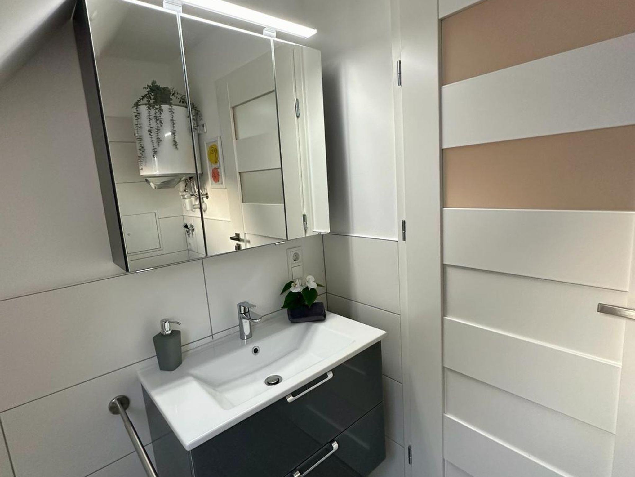 Die Wohnung verfügt ein Wohn-/Schlafzimmer mit komfortablen ausziehbaren Tagesbetten ausgestattet ist. Hier finden Sie genügend Platz für erholsamen Schlaf und entspannte Stunden. Genießen Sie gemütliche Abende beim Lesen, Fernsehen auf dem Smart TV oder Plaudern mit Ihren Liebsten.