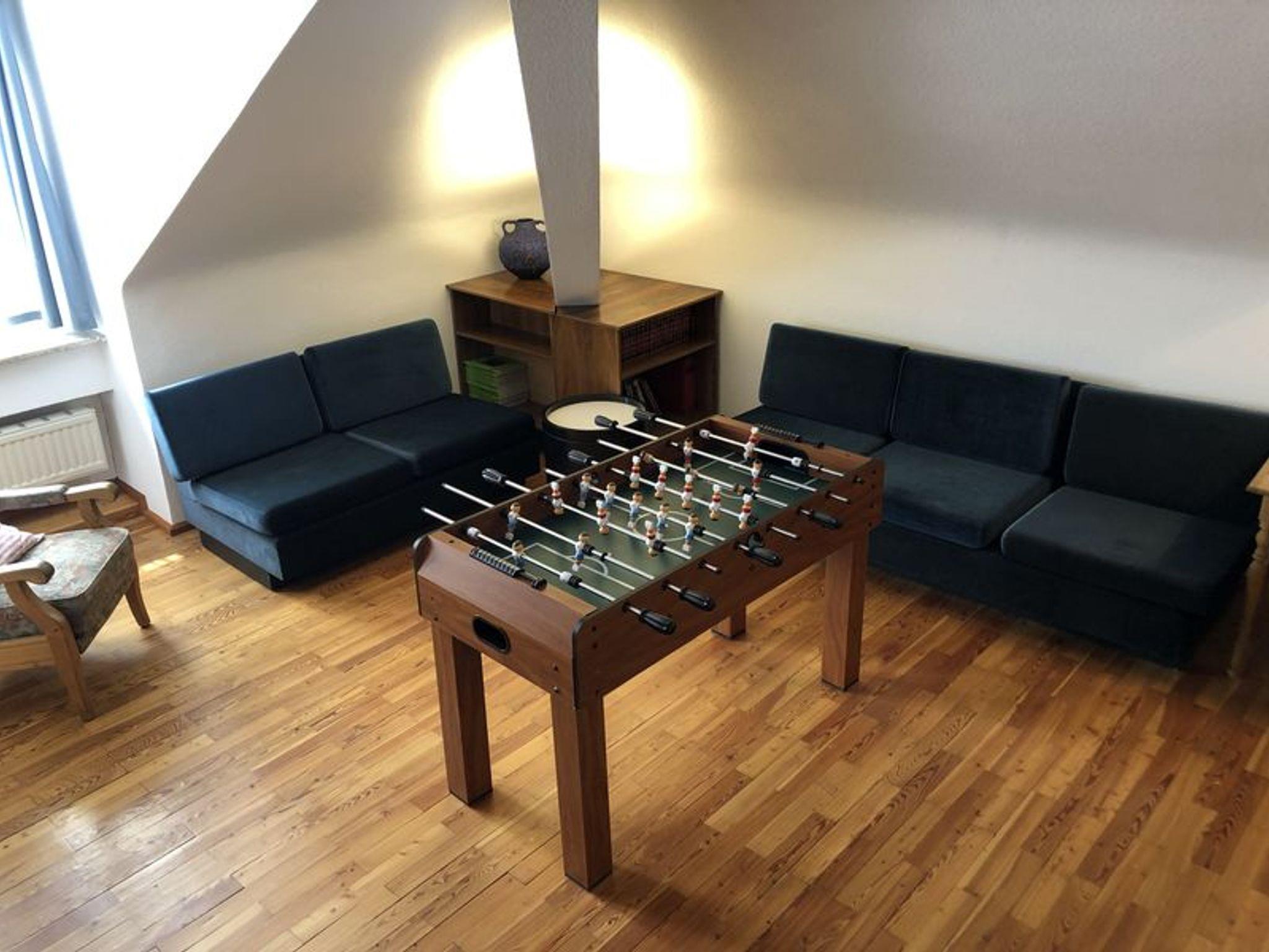 Im 2. OG befindet sich die größte Ferienwohnung mit 112 qm, die wir nach einigen Renovierungsarbeiten seit Sommer 2020 anbieten können. Sie hat 4 Schlafzimmer und einen großen Küchen- und Essbereich, separates WC und Bad mit 2 Waschbecken, Dusche und Badewanne + eigene Dachterrasse mit Grillmöglichkeit.