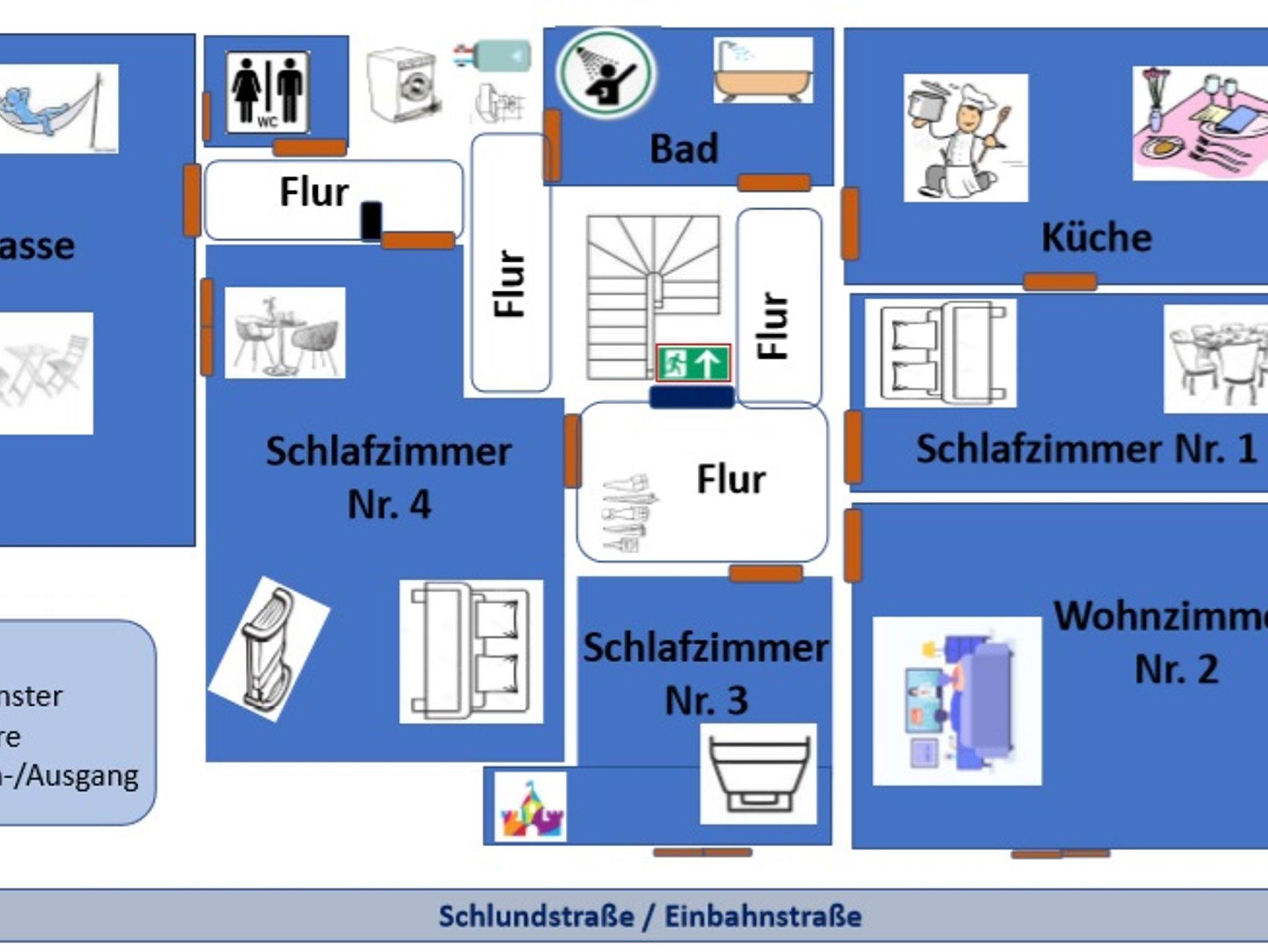 Im 2. OG befindet sich die größte Ferienwohnung mit 112 qm, die wir nach einigen Renovierungsarbeiten seit Sommer 2020 anbieten können. Sie hat 4 Schlafzimmer und einen großen Küchen- und Essbereich, separates WC und Bad mit 2 Waschbecken, Dusche und Badewanne + eigene Dachterrasse mit Grillmöglichkeit.
