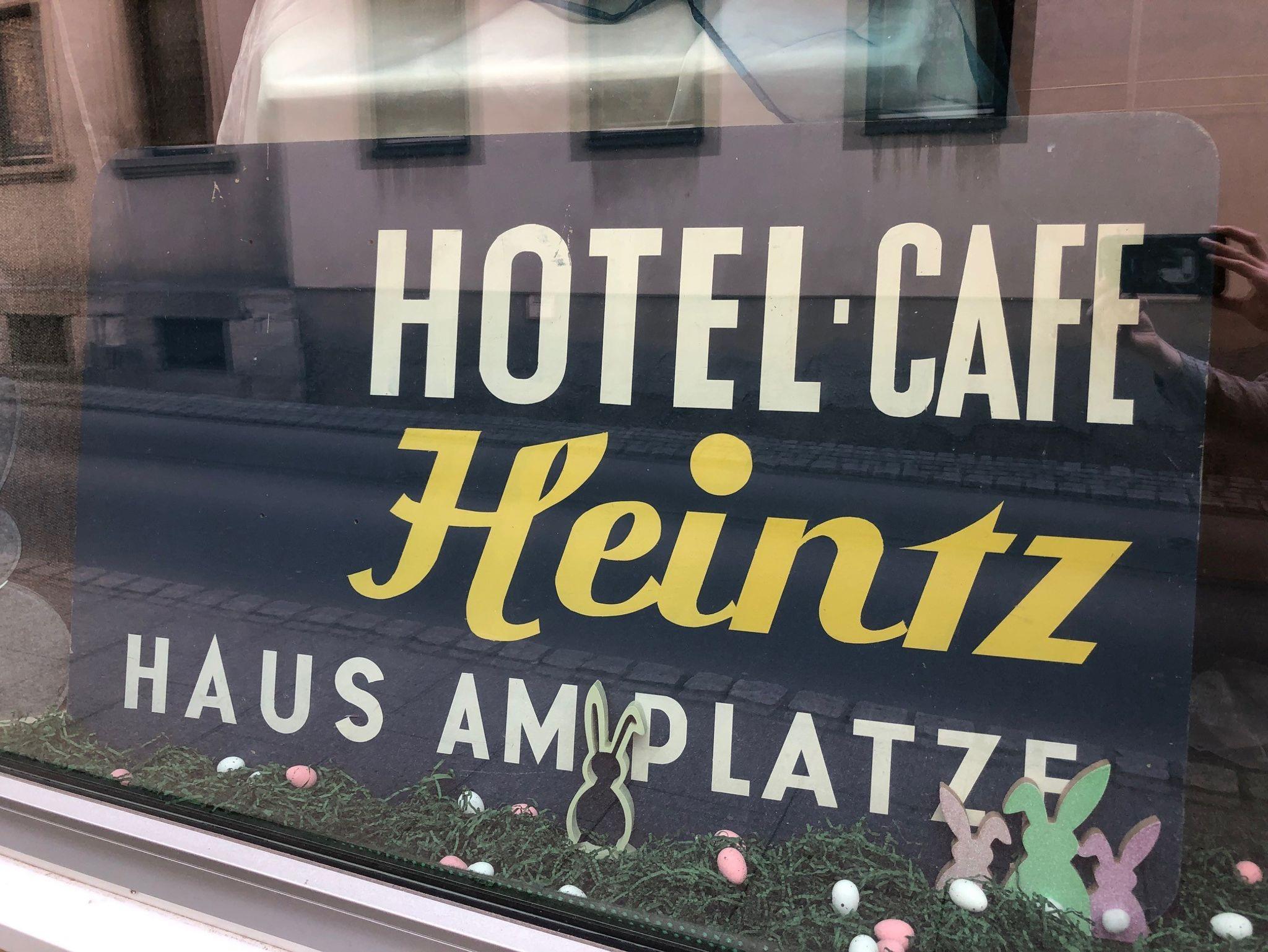 Im EG befindet sich das Café Heintz (seit 1884), das seit 2021 auch von uns selbst bewirtschaftet wird. Öffnungszeiten: 9-18 Uhr täglich, auch an Feiertagen.