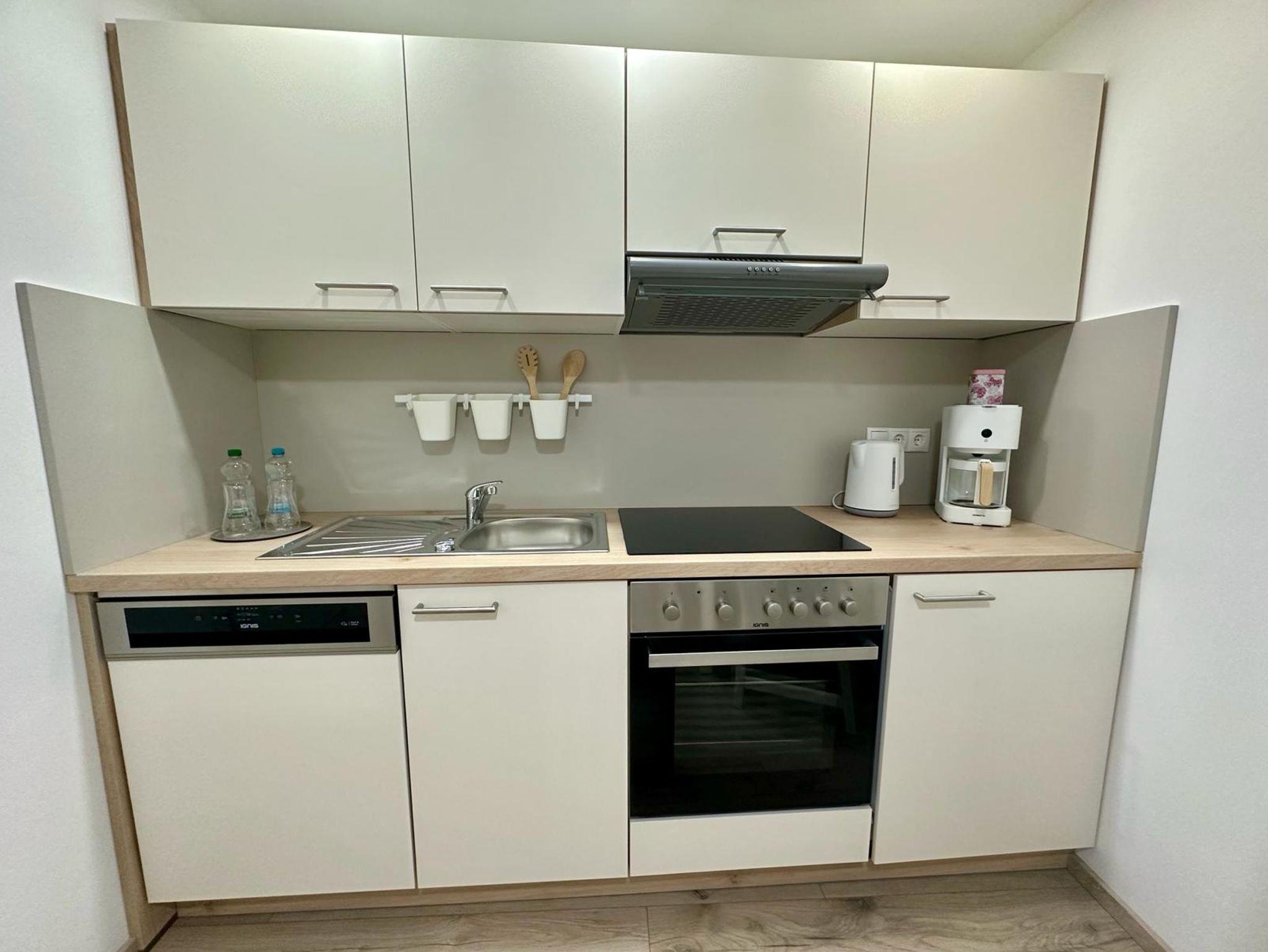 Die vollausgestattete Küche lässt keine Wünsche offen und bietet Ihnen die Möglichkeit, Ihre Lieblingsgerichte selbst zuzubereiten. Sie umfasst einen Wasserkocher, eine Kaffeemaschine, eine Mikrowelle, einen Kühlschrank, einen Geschirrspüler, sowie Besteck und Kochutensilien. Egal, ob Sie sich für ein schnelles Frühstück oder ein aufwändiges Abendessen entscheiden, hier haben Sie alles, was Sie dazu brauchen.