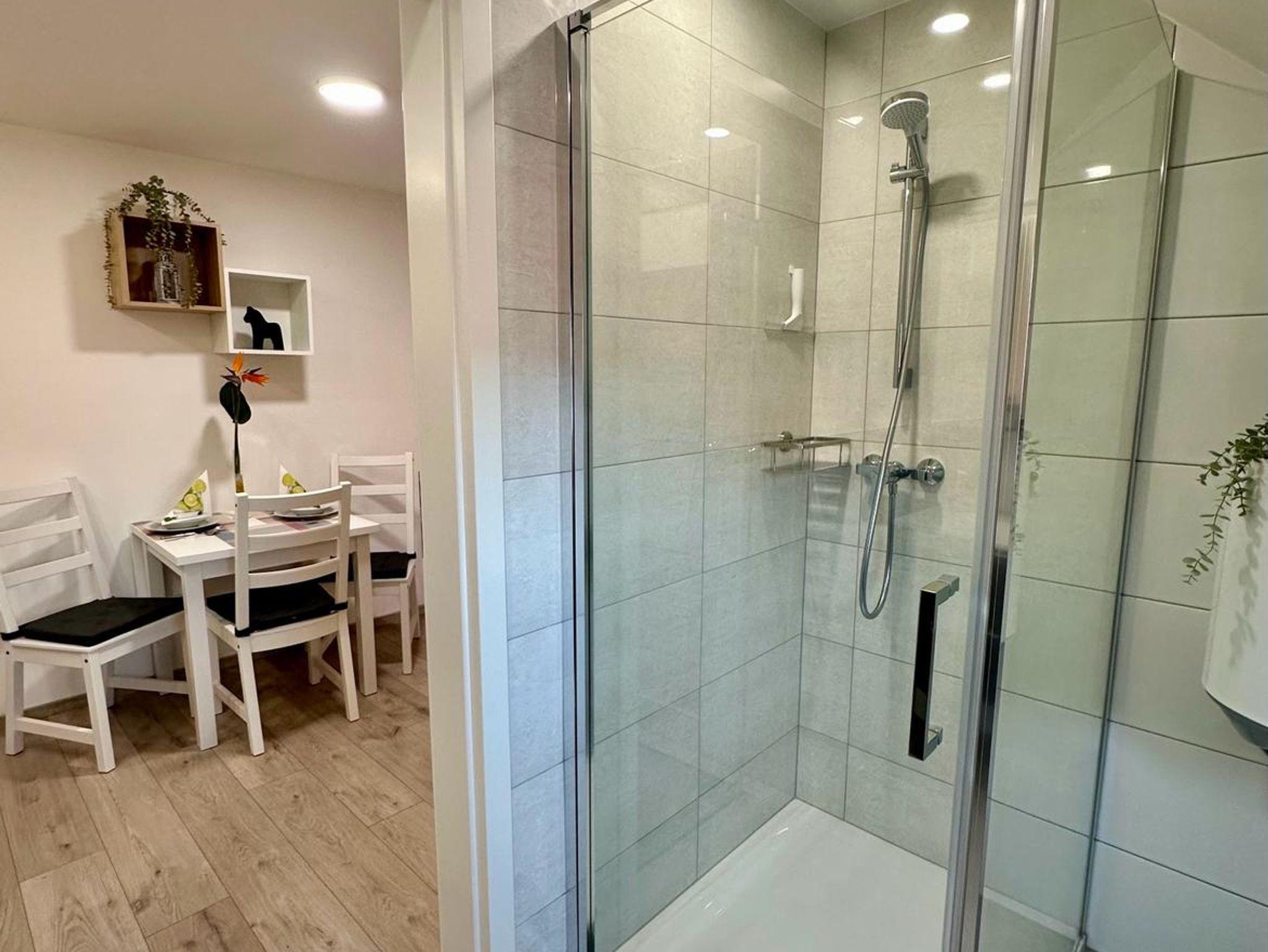 Das Badezimmer verfügt über eine große Dusche (90x100cm), einen Föhn, sowie Handtücher und Seife, die inklusive sind. Zusätzlich stehen Ihnen Bettwäsche und Zusatzdecken zur Verfügung.
