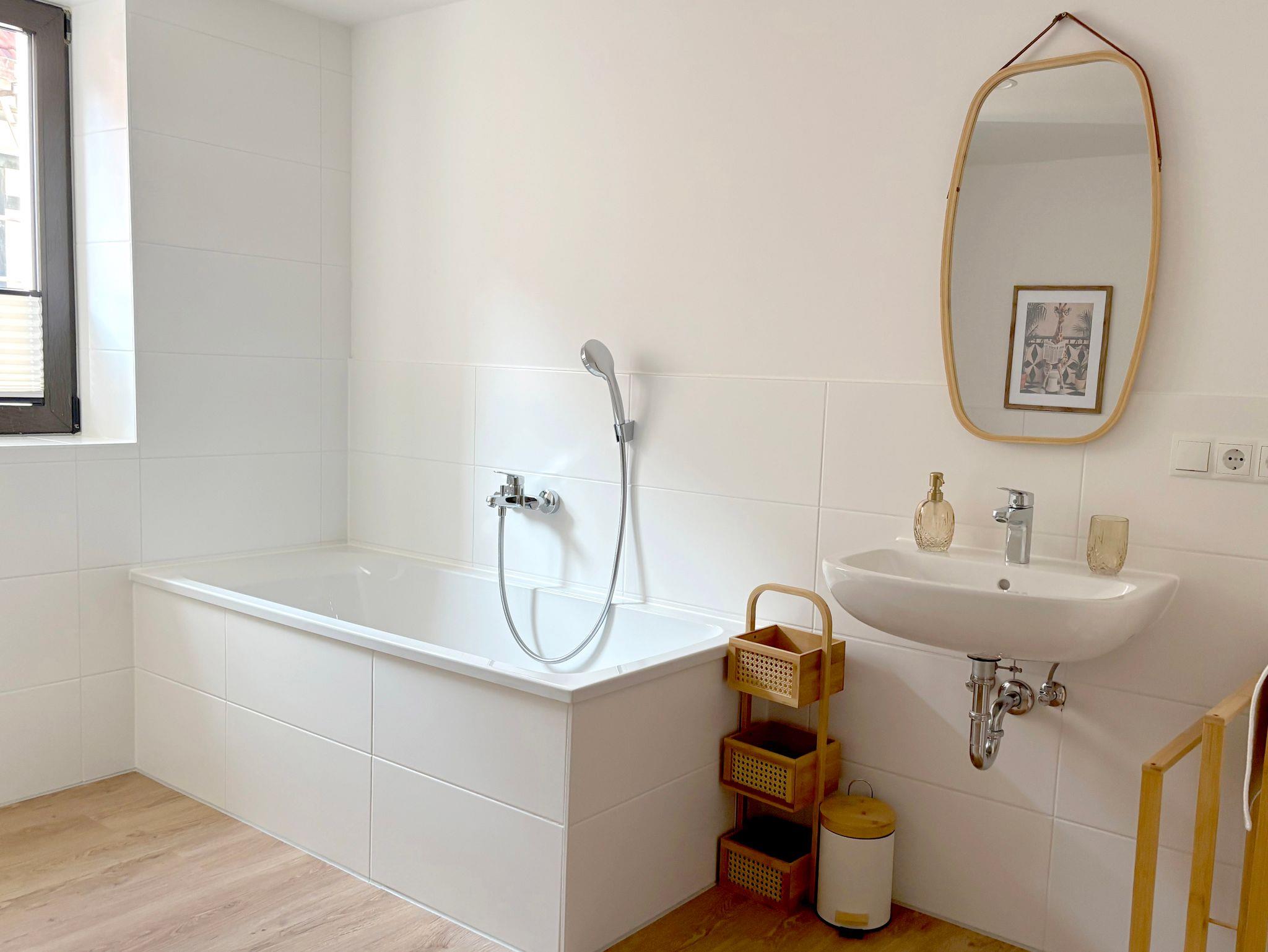 Nur wenige Gehminuten vom historischen Marktplatz, der Fränkischen Saunalandschaft, dem Kurzentrum und zahlreichen Einkaufsmöglichkeiten entfernt, genießen Sie in unserer Ferienwohnung kurze Wege und zugleich eine entspannte Atmosphäre. Die Wohnung bietet ein helles, stilvoll eingerichtetes Wohnzimmer mit gemütlicher Essecke und TV sowie eine komplett ausgestattete Küche. Drei separate Schlafzimmer – zwei mit Doppelbetten und eines mit einem Etagenbett – sorgen für erholsame Nächte und ausreichend Platz für Paare, Familien oder Freunde. Das moderne Bad mit Dusche, Badewanne und WC rundet den hohen Wohnkomfort ab. Selbstverständlich steht Ihnen kostenloses WLAN zur Verfügung.