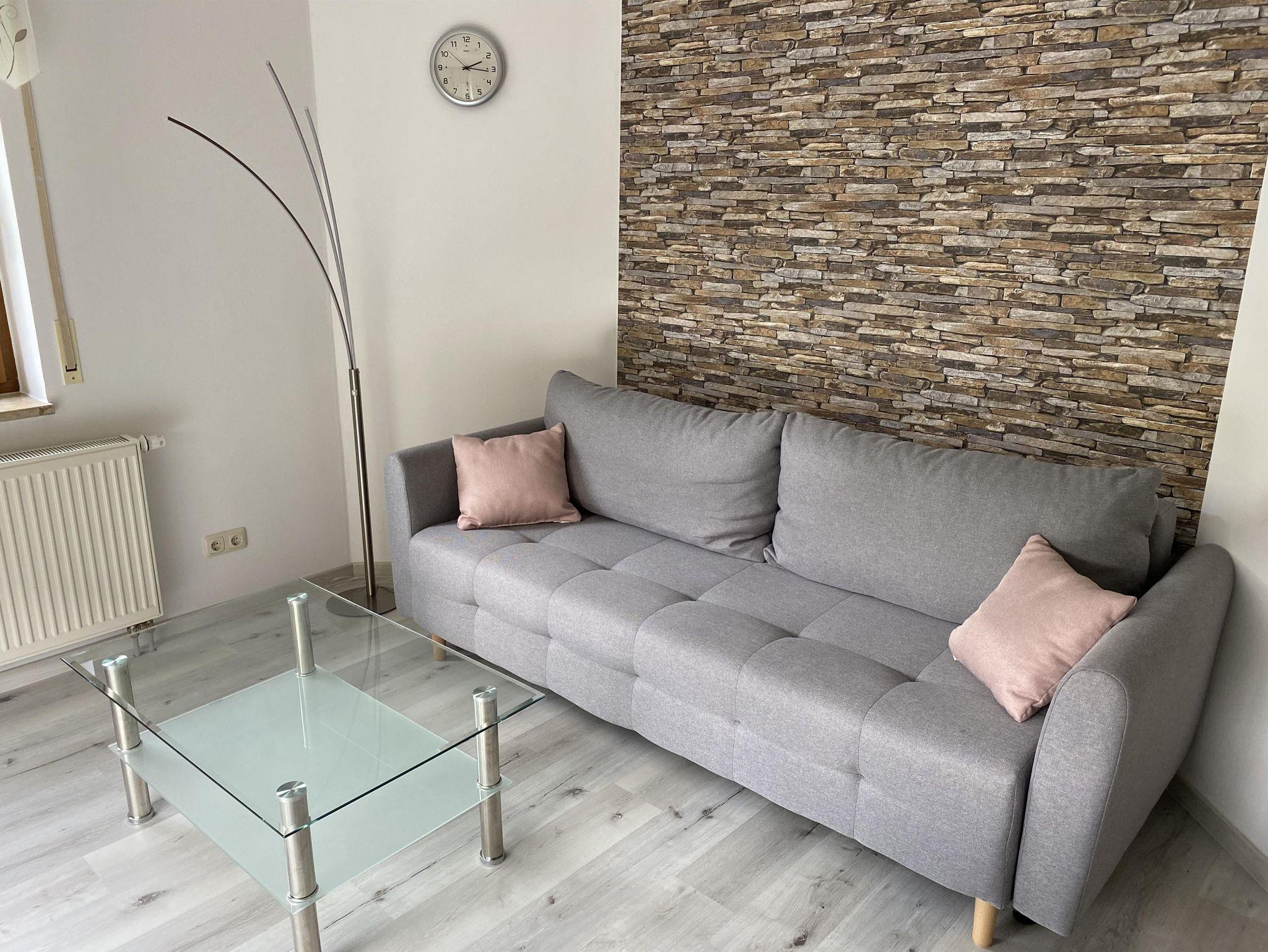Die Wohnung liegt im Erdgeschoss. Die geschützte Sonnenterasse ist vom Wohnraum aus erreichbar und lädt bei schönem Wetter auch zum Sitzen im Freien ein. Naturlich befindet sich im Wohnzimmer sowohl ein Fernseher als auch ein Radio.