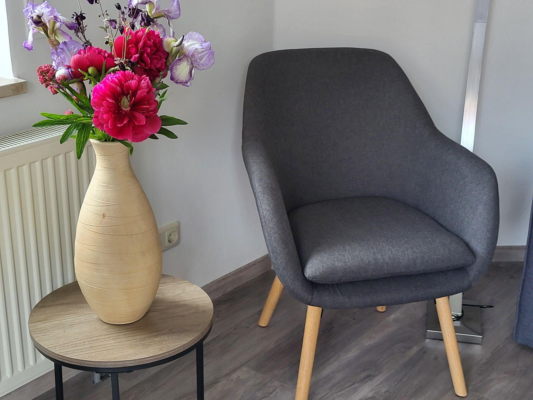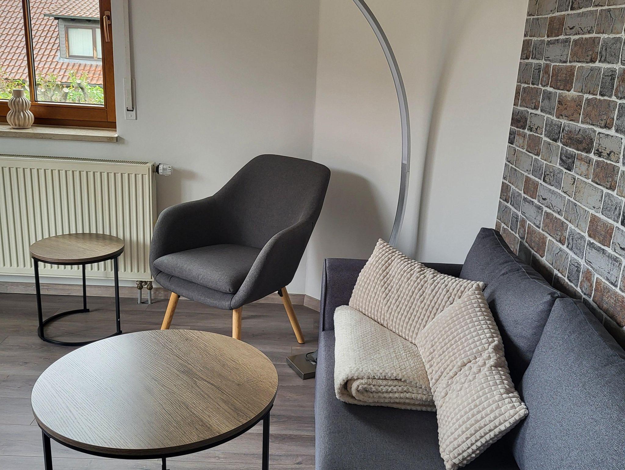 Die Wohnung liegt in der 1. Etage. Der Balkon ist vom Wohnraum aus erreichbar und lädt bei schönem Wetter auch zum Sitzen im Freien ein. Naturlich befindet sich im Wohnzimmer ein Fernseher.
